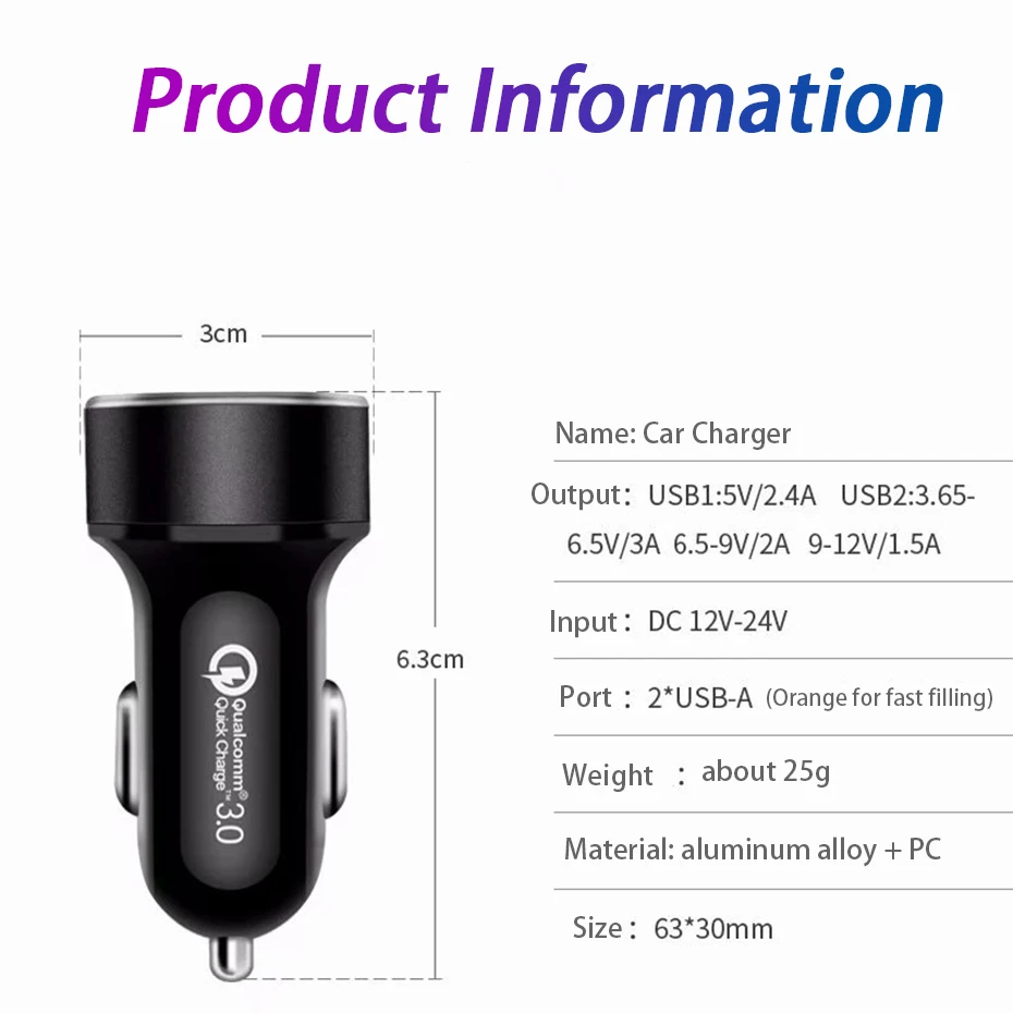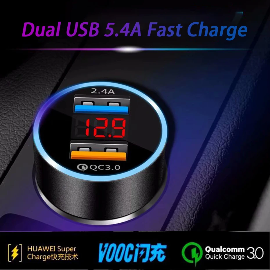 Автомобильное зарядное устройство QC3.0 + 2.4A с двумя USB-портами, ЖК-дисплей, 12-24 В, прикуриватель, быстрая зарядка, автоматический USB-адаптер, обновленный