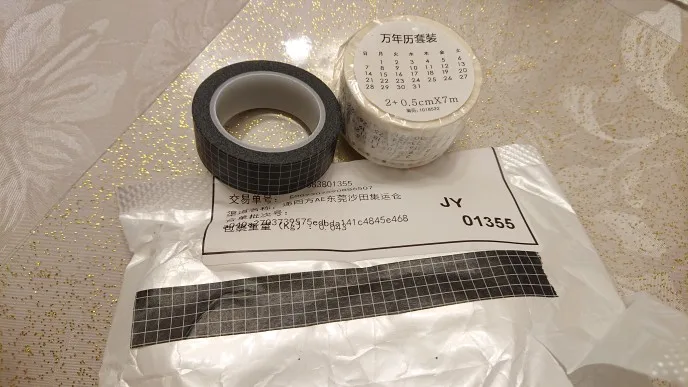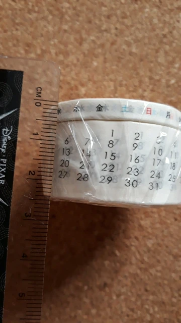 Он прибыл всего за 1 месяц. Маленький размер, как указано в описании. Это то, что я ожидал. Мне понравилось. Возьмите ленту в течение дня недели на японском (выглядит), поэтому я не знаю, буду ли я им пользоваться. Я думаю, что это будет выглядеть как украшение васи-ленты.