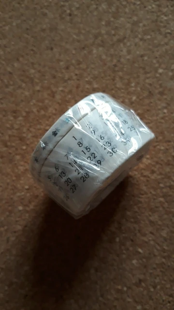 Эта тонкая прозрачная бумажная клейкая лента с цифрами от 1 до 31, которые идут по кругу, поэтому понятно, что они напечатаны спиралью, соответственно, когда вы отрезаете часть на месяц, то цифры будут располагаться неровно. Если наклеите на белый лист, то будет совсем незаметно, но а в противном случае придется как-то подрезать. Наклеивается хорошо и держится хорошо. В ширину лента 2см. Пришло быстро, через 3 недели.