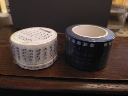 Лента точно такая же, как на изображении: две функции ленты, одна с числами, стилизованными в мостом разложенном виде и одна с символами в течение дней недели. Лента хорошо прилипает. Как изображено продавцом, цифры немного под углом по сравнению с краями ленты, так что цифры сохраняют место на ленте.