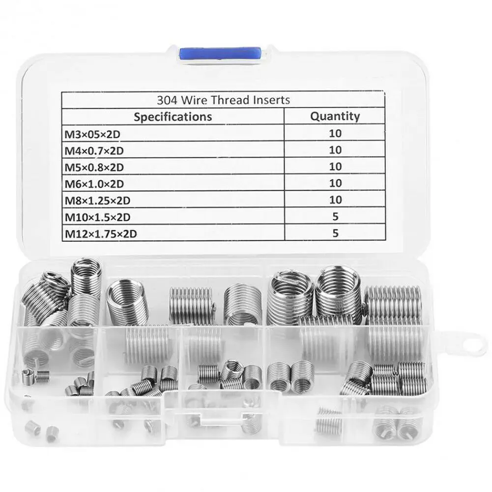 Тип винта втулки проволочного замка может зафиксировать винт в резьбовом отверстии, так что винт не будет свободно при вибрационных ударах.Избегайте скольжения резьбы, неправильного зуба и получите отличную производительность подключения.Анти-свободные. Особенно для самолетов и других продуктов, которые требуют высоких коэффициентов страхования.Высокая прочность и hardness.com удобный и практичный. В прочном использовании.Используется в различных низкопрочных материалах, которые могут улучшить износостойкость болтов и избежать повреждения провода.Параметры:Название продукта: Набор для ремонта резьбыМатериал: нержавеющая стальЦвет: серебристыйРазмер: M3-M12Посылка включает в себя:10 шт. x M3x0.5x2D ремонтная Резьбовая вставка10 шт. x M4x0.7x2D ремонтная Резьбовая вставка10 шт. x M5x0.8x2D ремонтная Резьбовая вставка10 шт. x M6x1.0x2D ремонтная Резьбовая вставка10 шт. x M8x1.25x2D ремонтная Резьбовая вставка5 шт. x M10x1.5x2D ремонтная Резьбовая вставка5 шт. x M12x1.75x2D ремонтная Резьбовая вставкаПримечание:Перевод ед. измерения: 1 см = 10 мм = 0,39 дюймов1. В связи с использованием разных по светильник экране монитора фактический цвет товар точно такой же, как и цвет изделия на фото может быть s светильник ly отличается из-за характеристик монитора компьютера.2. Замеры сделаны вручную, поэтому возможны 0,5-2 см, связанная с особенностями измерения вручную.