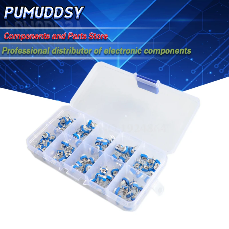 100 шт.лот 10 значений * 10 шт. RM065 набор вертикальных регулируемых резисторов в коробке 500 ohm-1M Ом набор многофункциональных триммеров с потенциометром