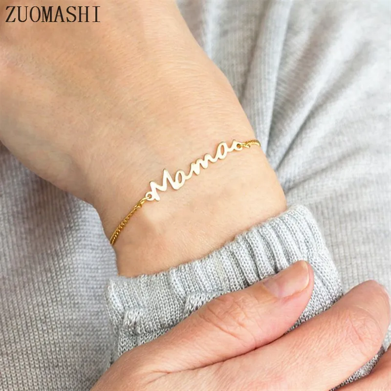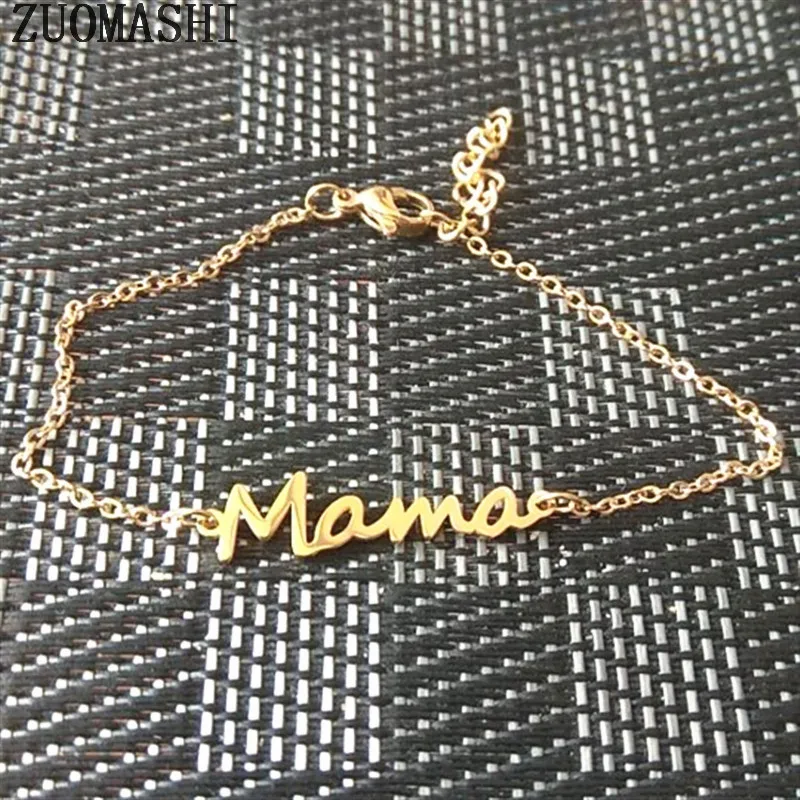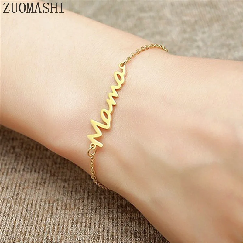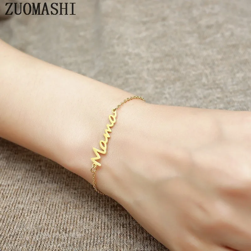 Браслет-цепочка мама из нержавеющей стали с Шармами