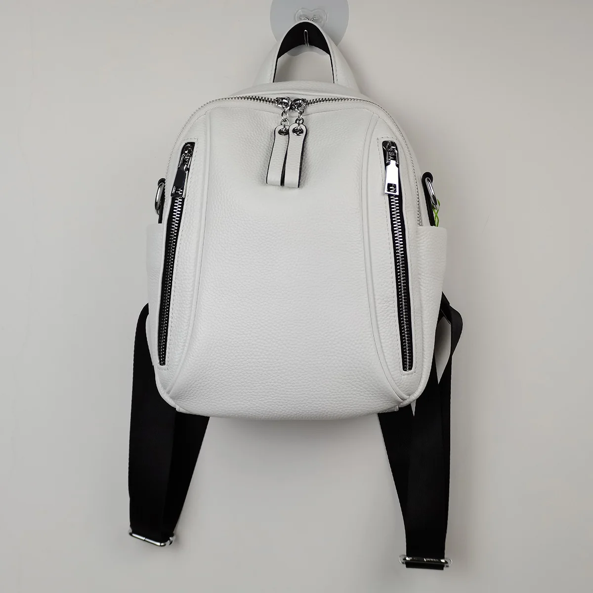 Женские рюкзаки из 100% натуральной кожи серебристого цвета, металлический женский школьный рюкзак из коровьей кожи с верхним слоем, сумки для покупок из воловьей кожи