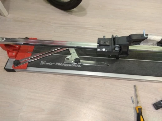 Опробовать не удалось, резку керамогранита закончил родным роликом плиткореза. Визуально качественный. Расстраивает только наличие люфта на винте, он меньшего диаметра чем подшипник в который вставляется.