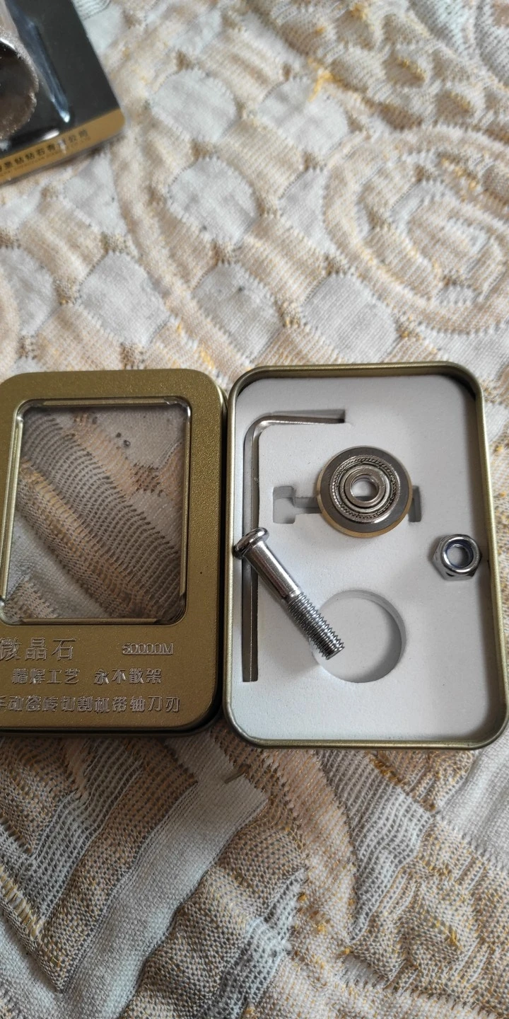 Ролик пришёл очень быстро. упакован в металлическую коробочку. Ось не подошла к моему плиткорезу, пришлось подбирать другую. Ролик имеет люфт на оси, но если сильно зажать, то не люфтит. Режет отлично, посмотрим на сколько хватит.