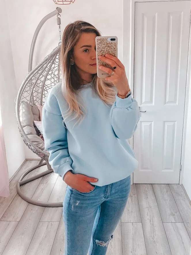 Я люблю эту толстовку и могу носить ее каждый день. Очень приятный и приятный материал. Он теплый и немного большой, но мне нравится. Очень высокое качество и мастерство. Он имеет красивый небесно-голубой цвет. Идеально подходит для многих повседневных стилей. Обязательно куплю другие цвета. Размер соответствует описанию. Я купил Размер M, и он мне идеально подходит (мои размеры 85/65 / 76 см) и мой рост 170 см. Экспресс-Доставка и доставка. Я настоятельно рекомендую :)