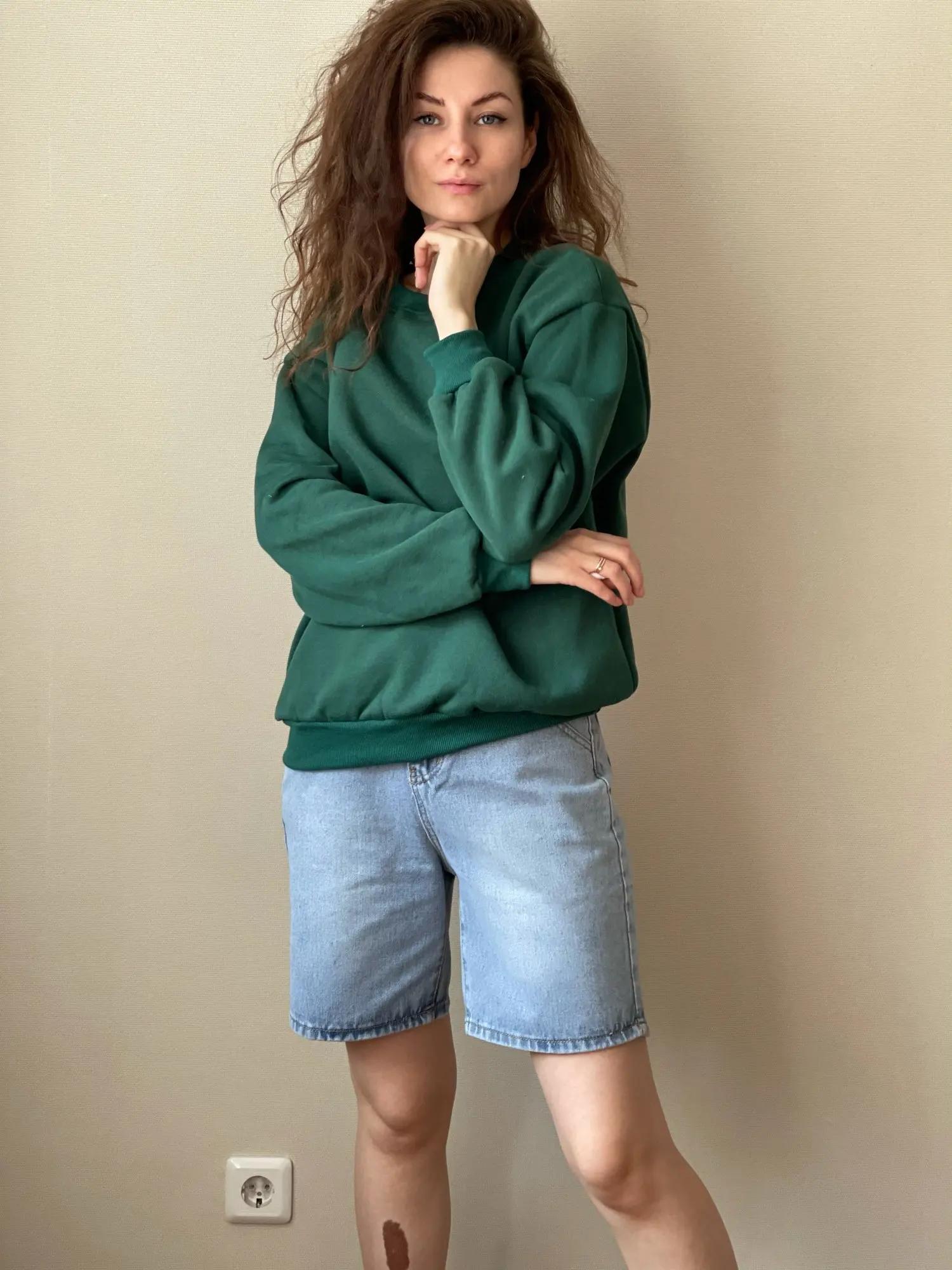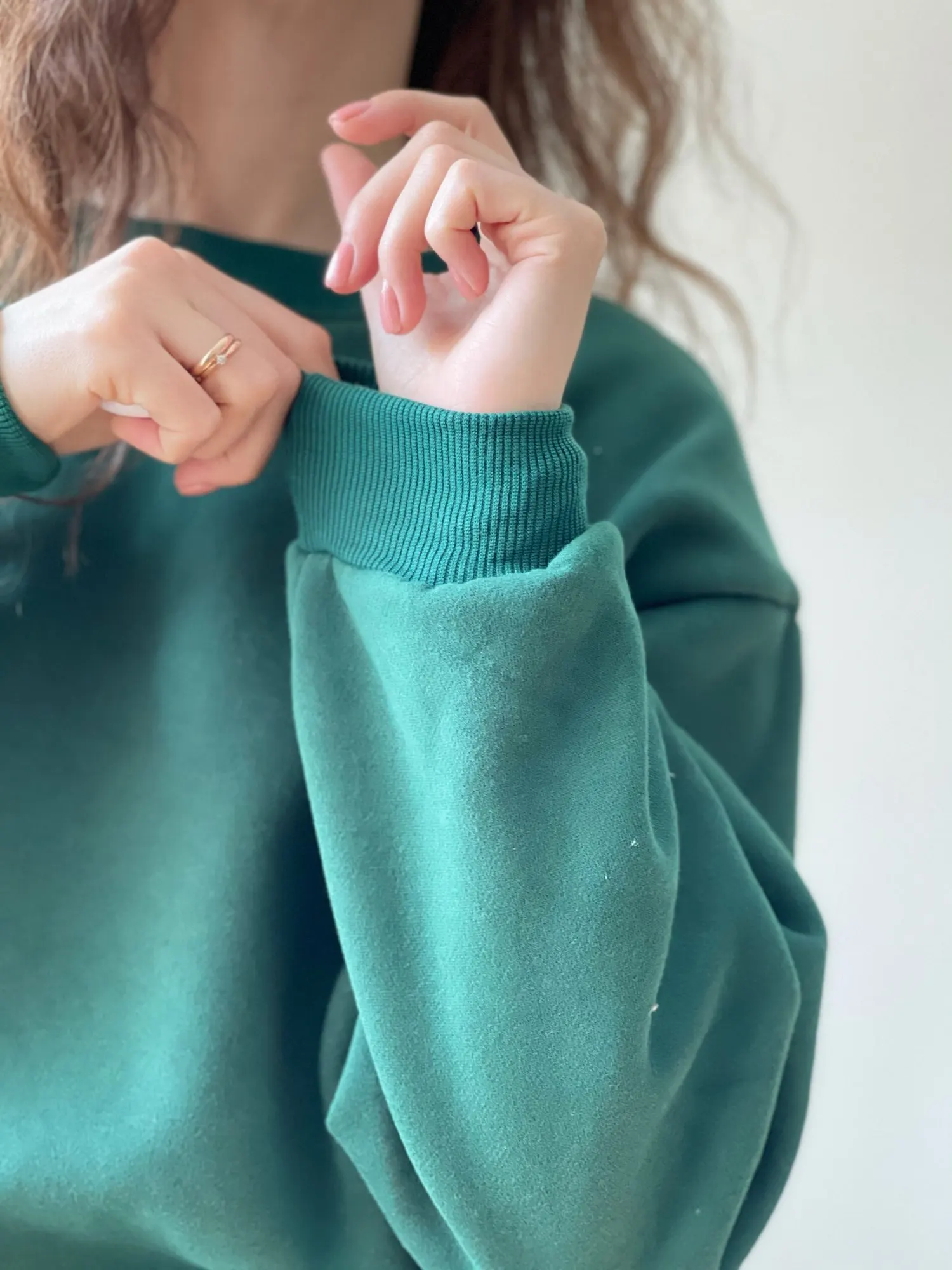 ИЗУМРУДНЫЙ СВИТШОТ Отличное качество, люблю эту фирму, вещи всегда долго носятся и хорошо сидят! Размер единый на мои параметры 84/60/90 и рост 167 см подошёл отлично) Цвет насыщенный, швы ровные, внутри есть утеплитель