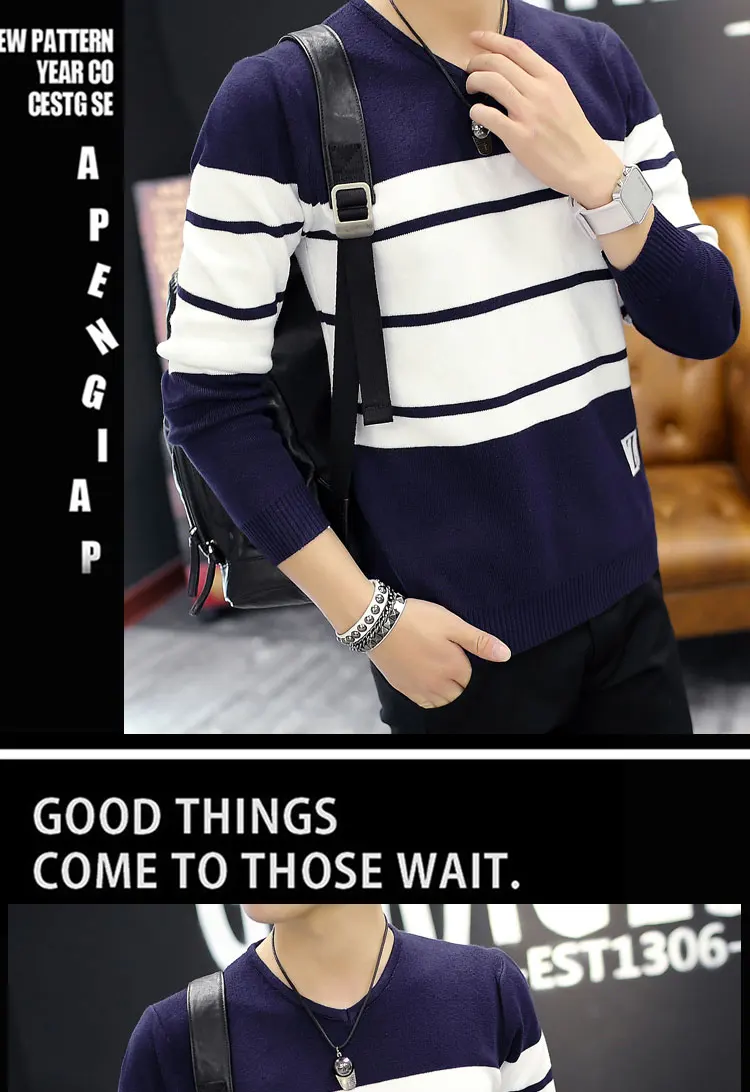 Мужской тонкий свитер в полоску, с V-образным вырезом и длинными рукавами