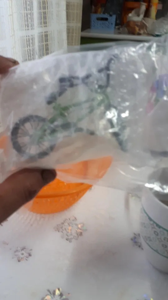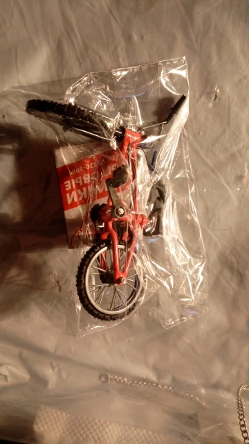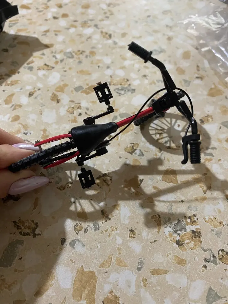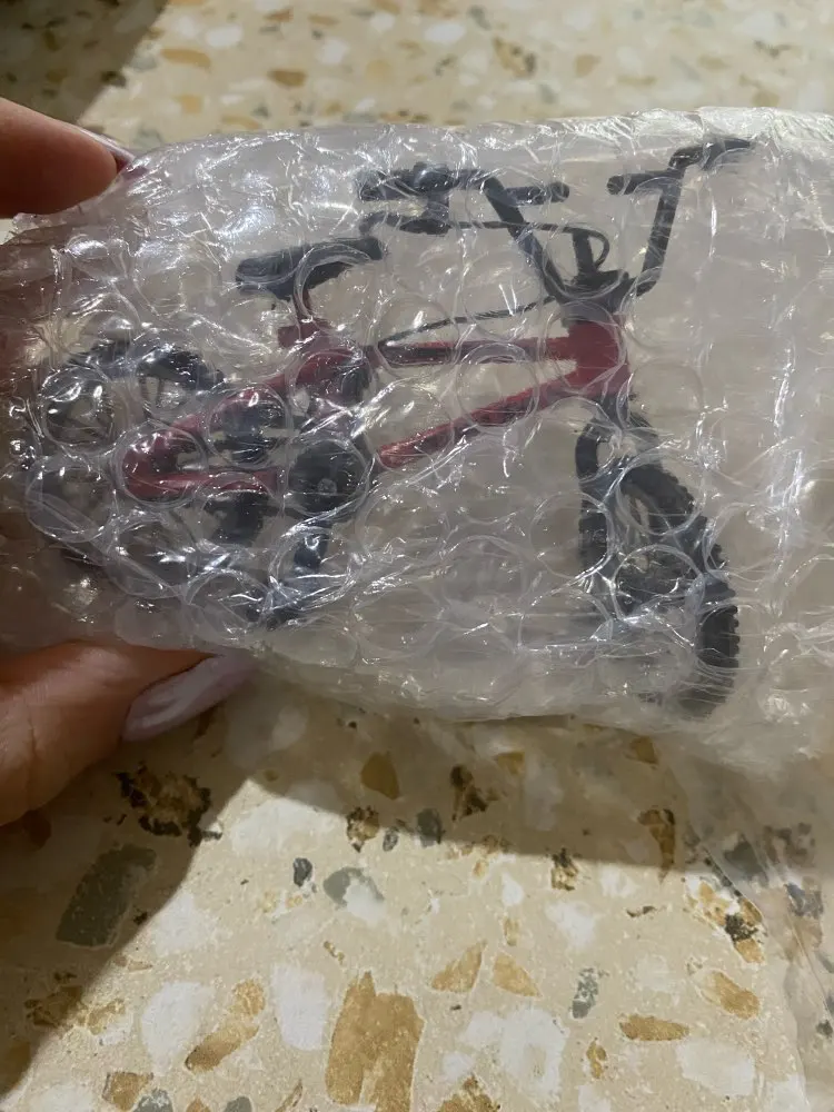 Заказ прибыл довольно быстро. Упакован отлично, в надутый пакет с воздухом из Китая :-)) На вид вообще как настоящий - короче моделька !!! Педали крутятся и через декоративную цепь (резинка) с задним колесом !!! Короче в качестве модельки супер !!! Продавцу спасибо !!!