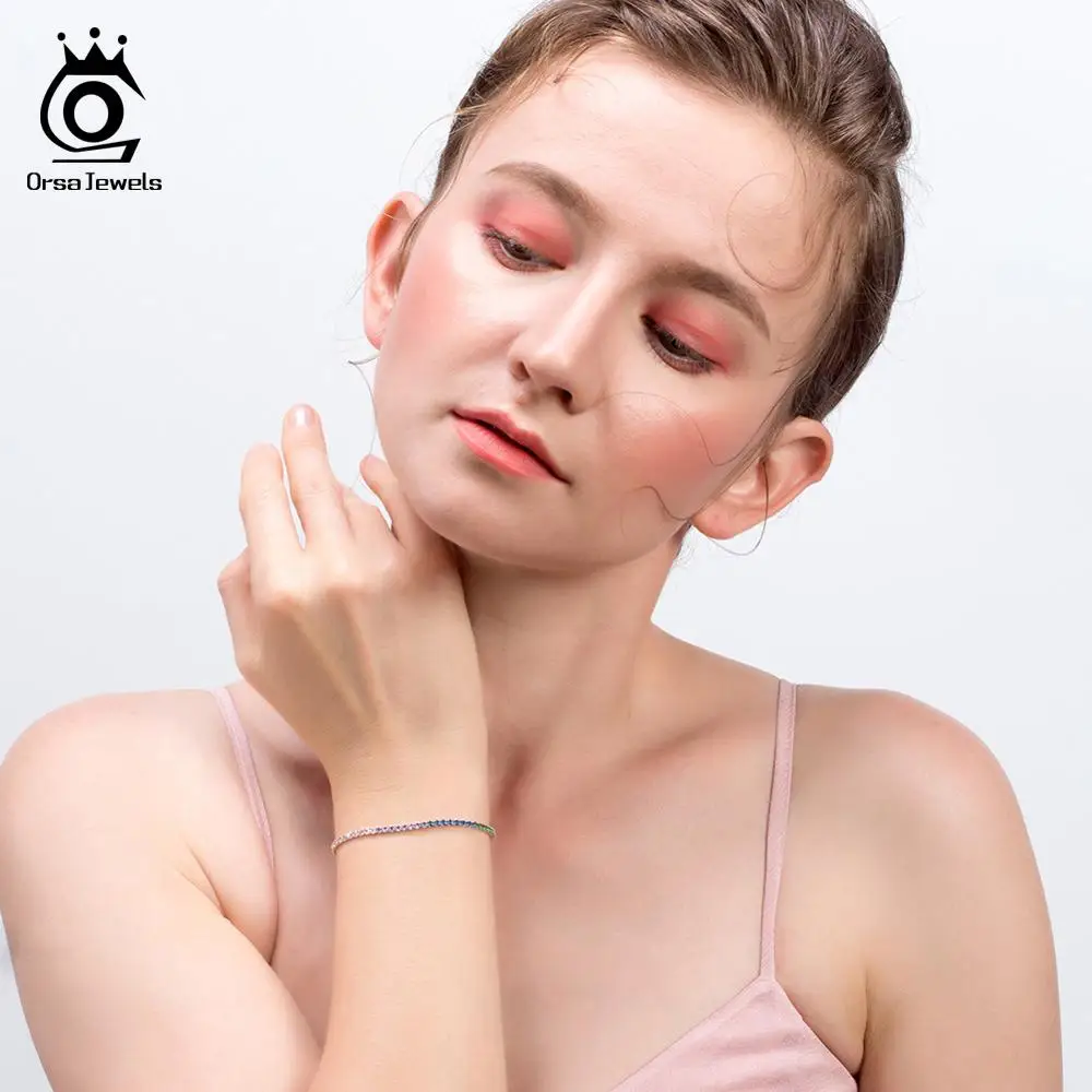 ORSA JEWELS, чистый 925 пробы, серебряный, регулируемый браслет для девочек, цветной, с кубическим цирконом, серебряная цепочка, ювелирные изделия для свиданий, SB42