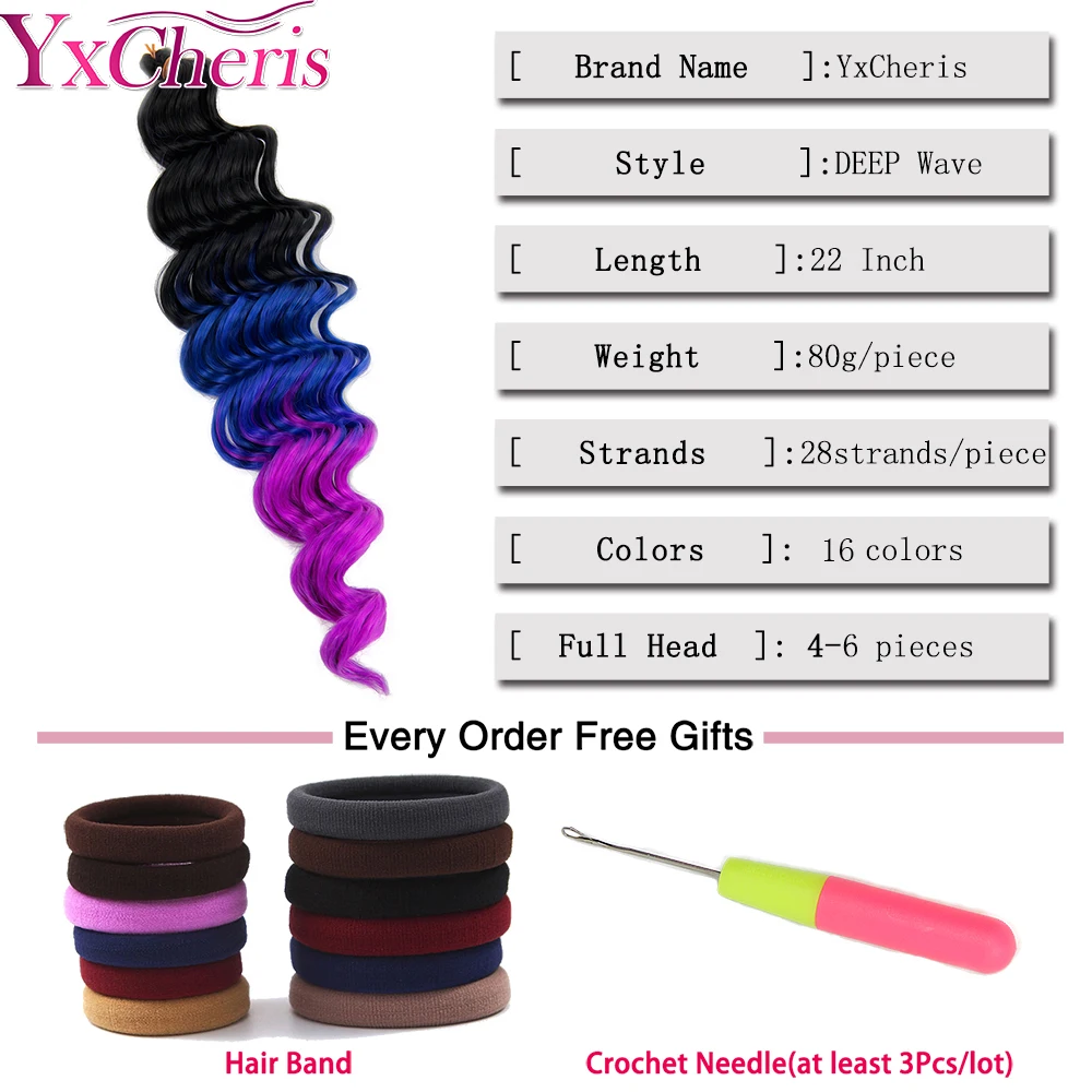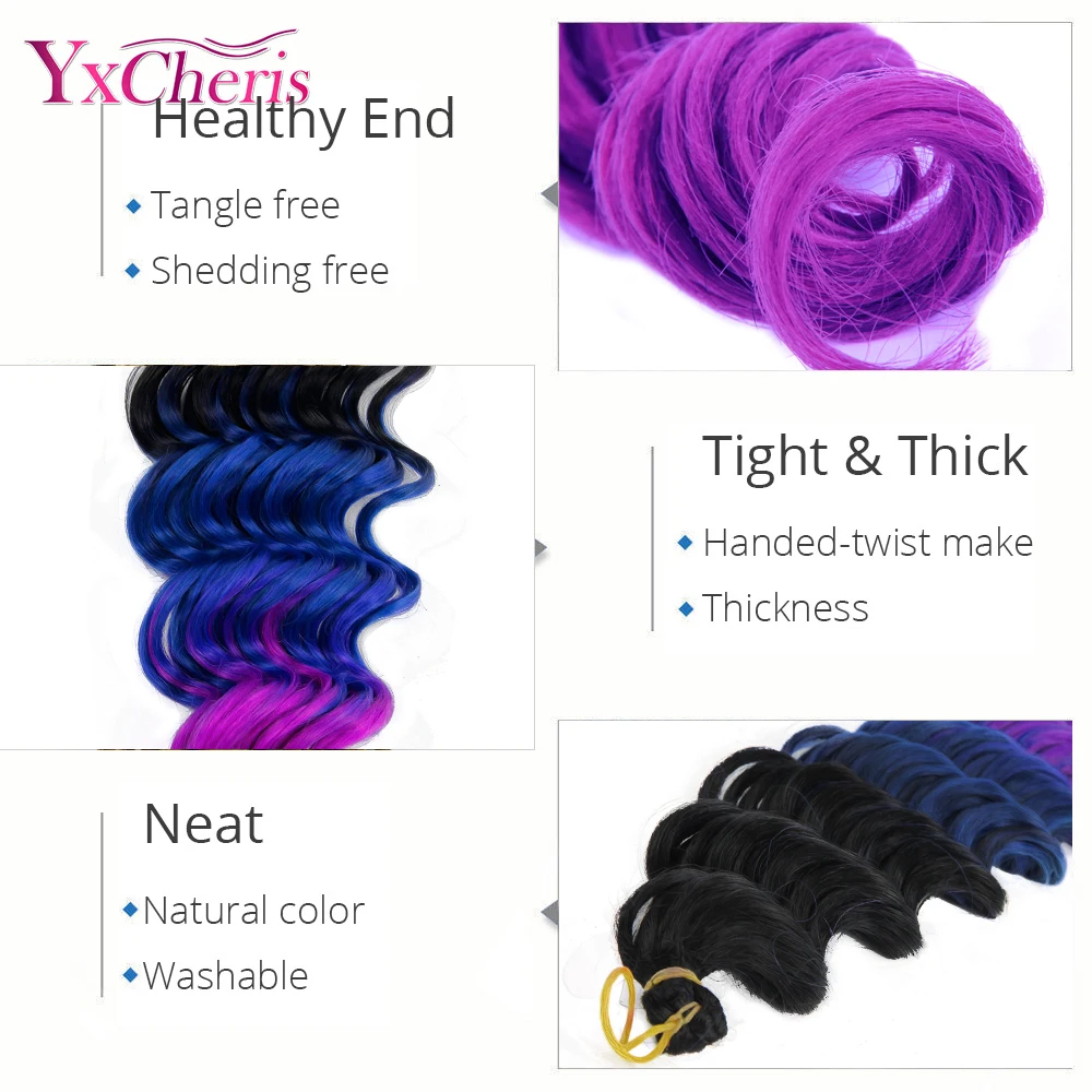 Плетеные волосы YxCheris, для плетения кос, глубокая закрутка, премиум-качество, крупные волны, синтетические волосы для наращивания, 18 дюймов, 80 г, плетение оптом