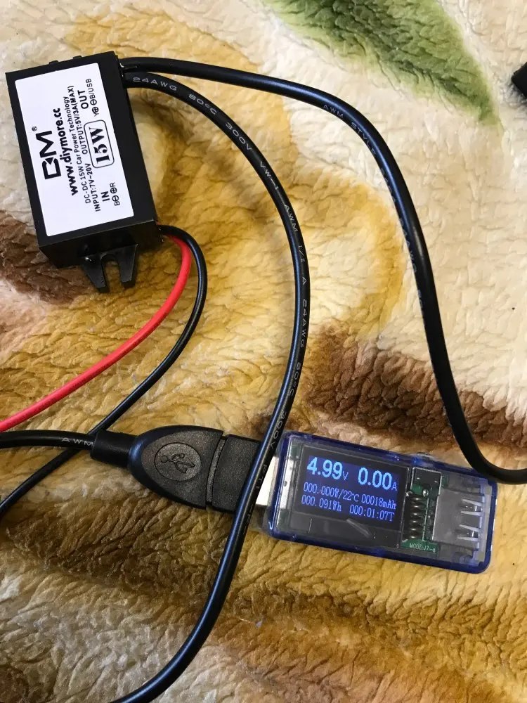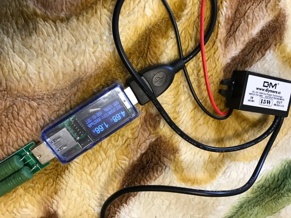 При подключение к блютуз адаптеру в автомобиле идёт фон в динамики. Брал его как питание адаптера. В итоге валяется теперь.