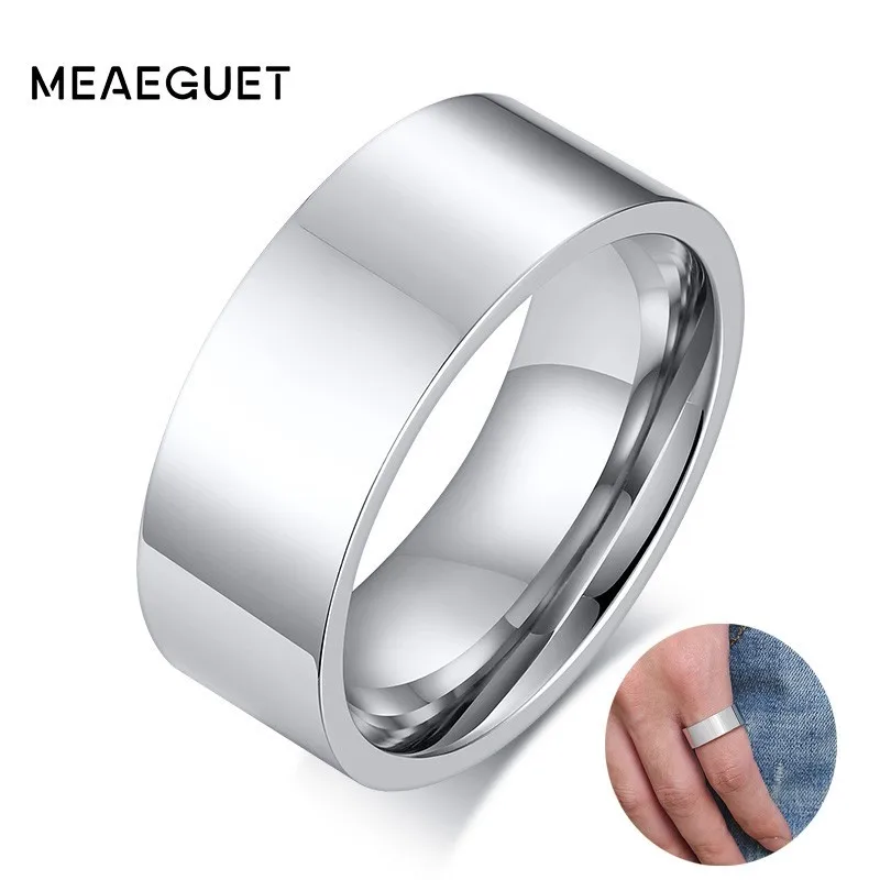 Мужские обручальные кольца из нержавеющей стали серебристого цвета, 8 мм, персонализированные мужские кольца с плоскими краями и квадратными краями