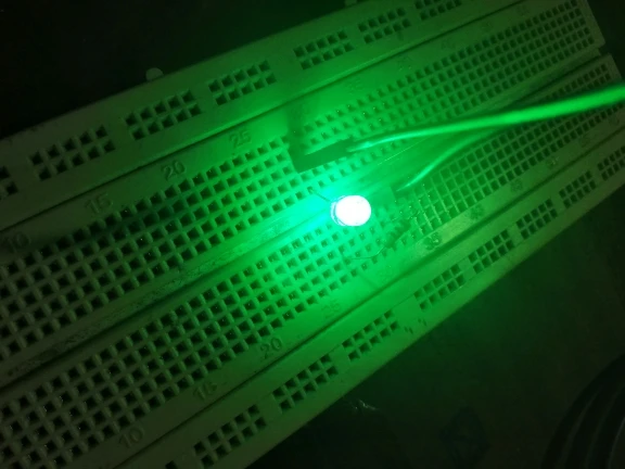 Проверил, работает. При 50 мА тока падение на диоде 3.40В. Диод при этом почти не греется. Фокусировка видна на фото, где то половина света идет лучем и остальное светит в бока. В упаковке было 99 шт, некритичная ошибка. За эти деньги отличный выбор.