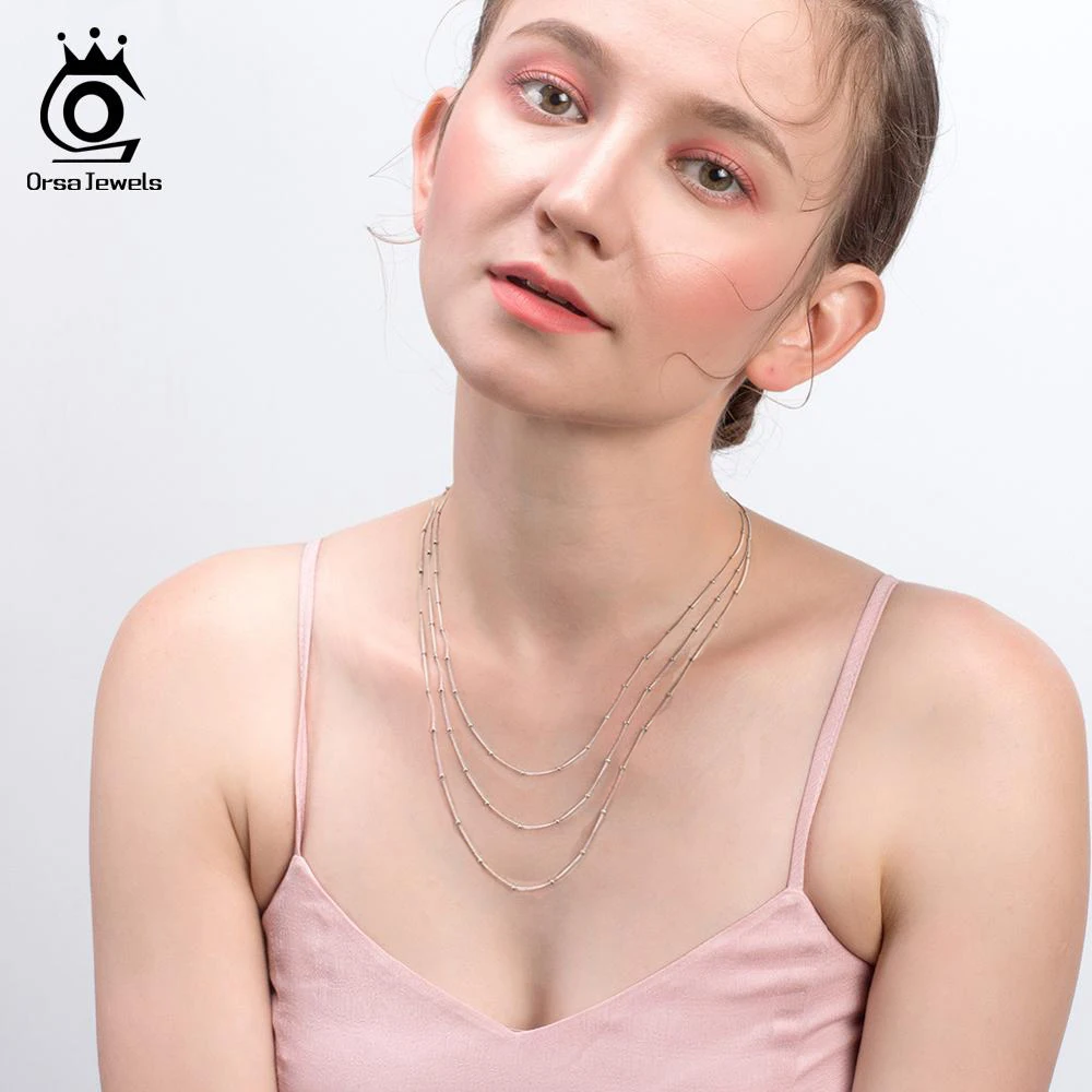 ORSA JEWELS Pure 925 боковая цепочка с маленьким шариком 45 см Длина цепочка простая Мода женские ювелирные изделия из стерлингового серебра аксессуары SC22