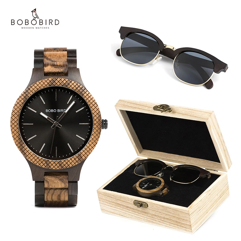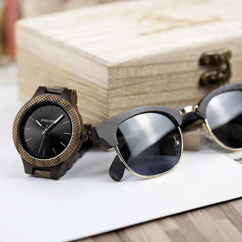 Мужские часы BOBO BIRD, набор солнцезащитных очков, деревянные часы, японские движущиеся, мужские кварцевые часы, отличный подарок, мужские часы