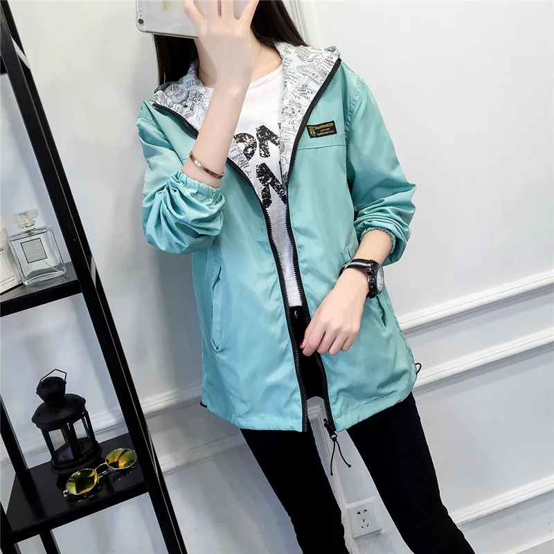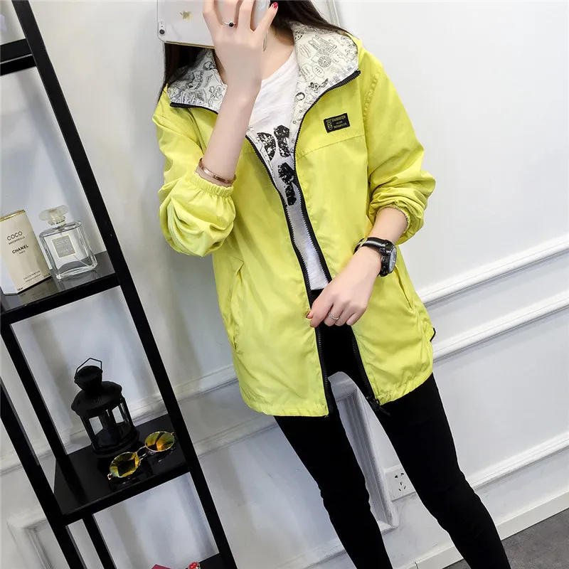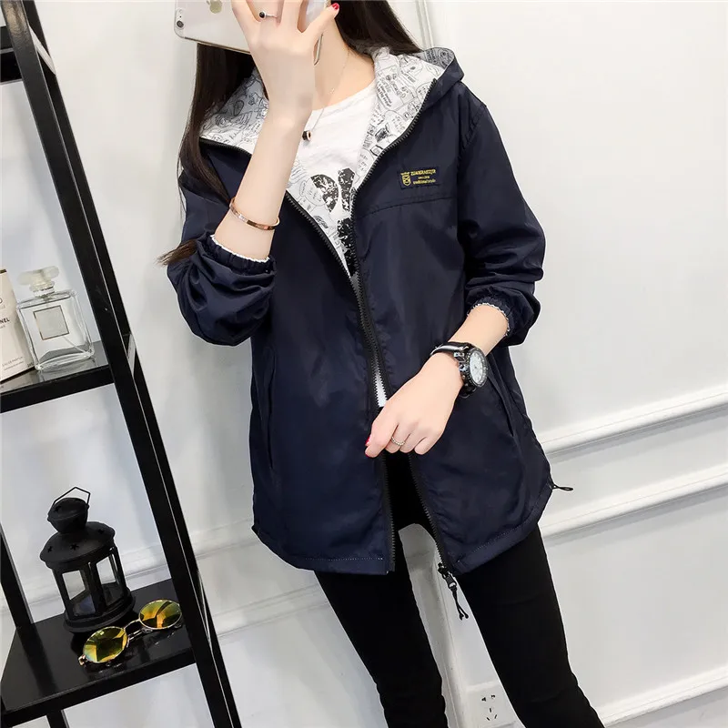 Куртка женская, с карманами, на молнии, с капюшоном, свободная, повседневная, весна-осень, 2019, M57
