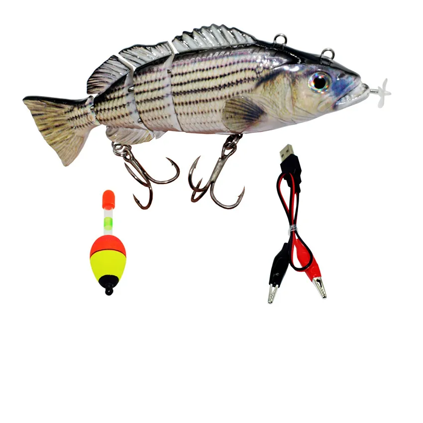 Электрическая рыболовная приманка, 5,12 дюйма5,3 дюйма, 4 секции, с USB-зарядкой, с крючком, яркая рыба