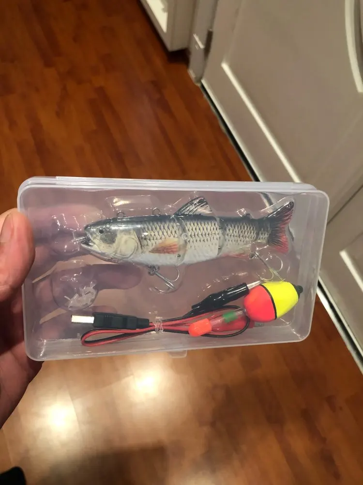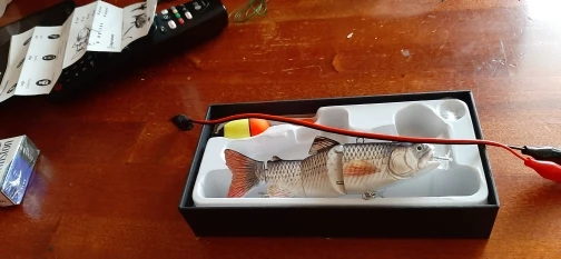 Рыбка плавает красиво, но не постоянно, а с перерывами. Чем дольше она в воде, тем короче время заплыва и длиннее перерывы на отдых. Работает около одного часа. Поплавок лучше заменить на больший размер. Пробовал на озере, но , пока безрезультатно. Лучше брать с собой Power Bank ( зарядку ), чтобы подзаряжать рыбку между делом.