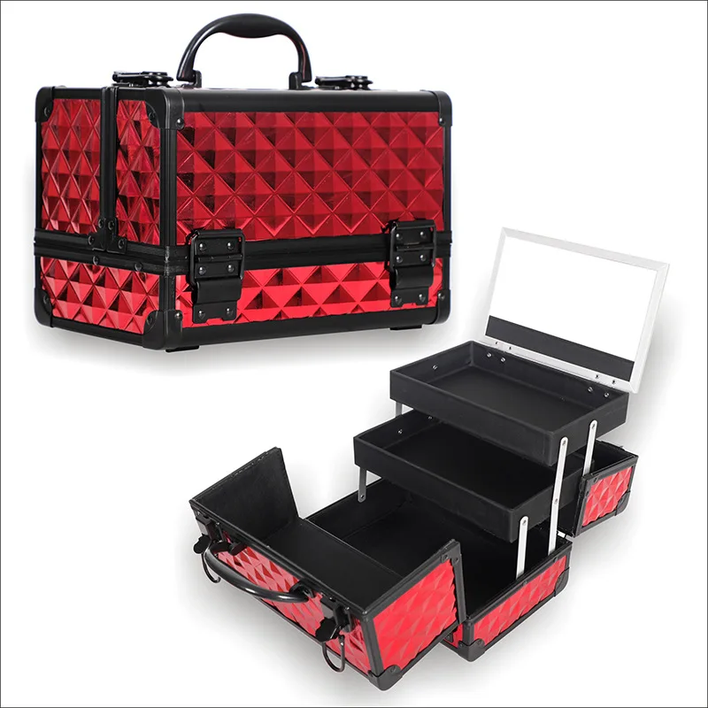 Косметичка женская из алюминиевого сплава с зеркалом, коробка для м...