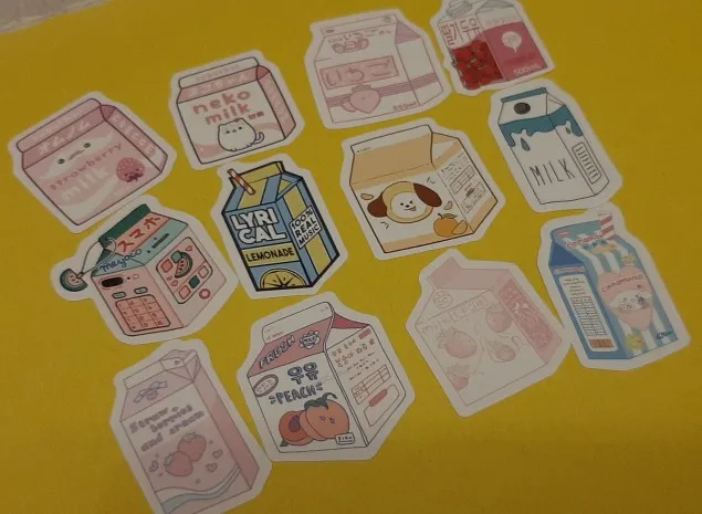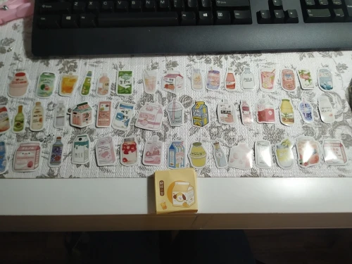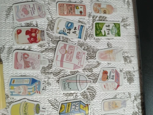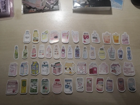 очень-очень крутые наклеечки, особенно за свою цену!!просто невероятные...как я поняла, наклейки отличаются своим стилем,у этих стилей есть группы (например,пакеты с молоком или бутылочки с напитками),думала,что их будет по две штучки каждой наклейки,но здесь всего 50 наклеек по 1 штуке. в общем, прекрасно! всем советую