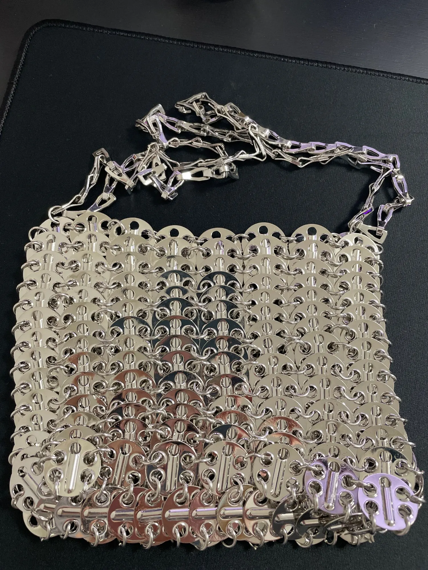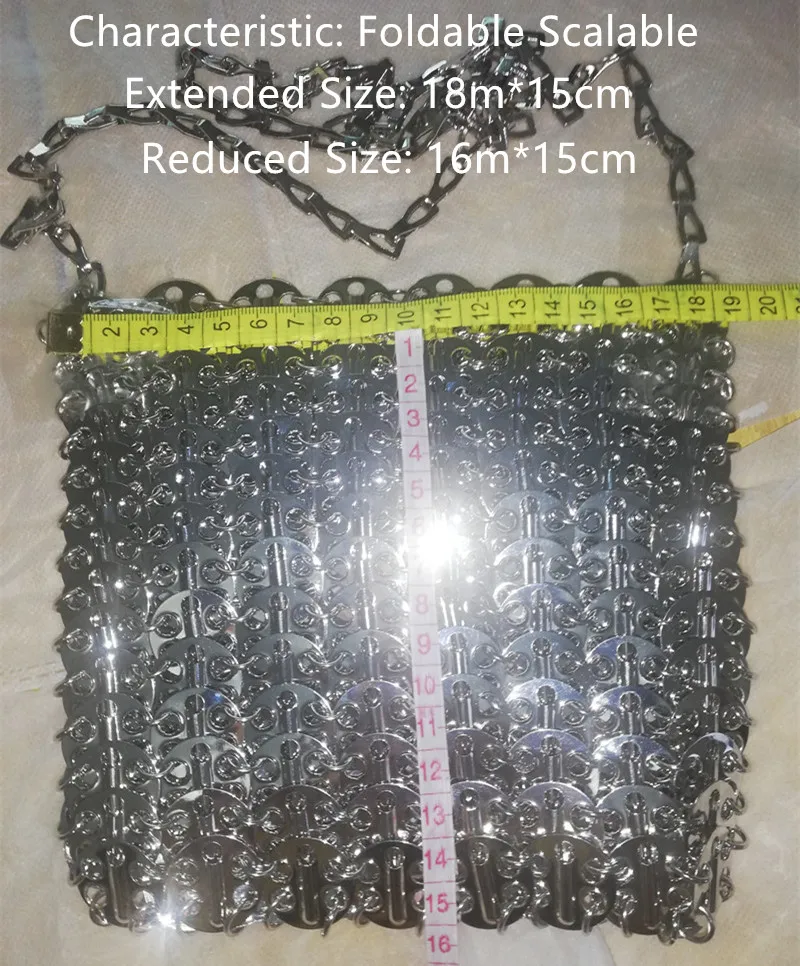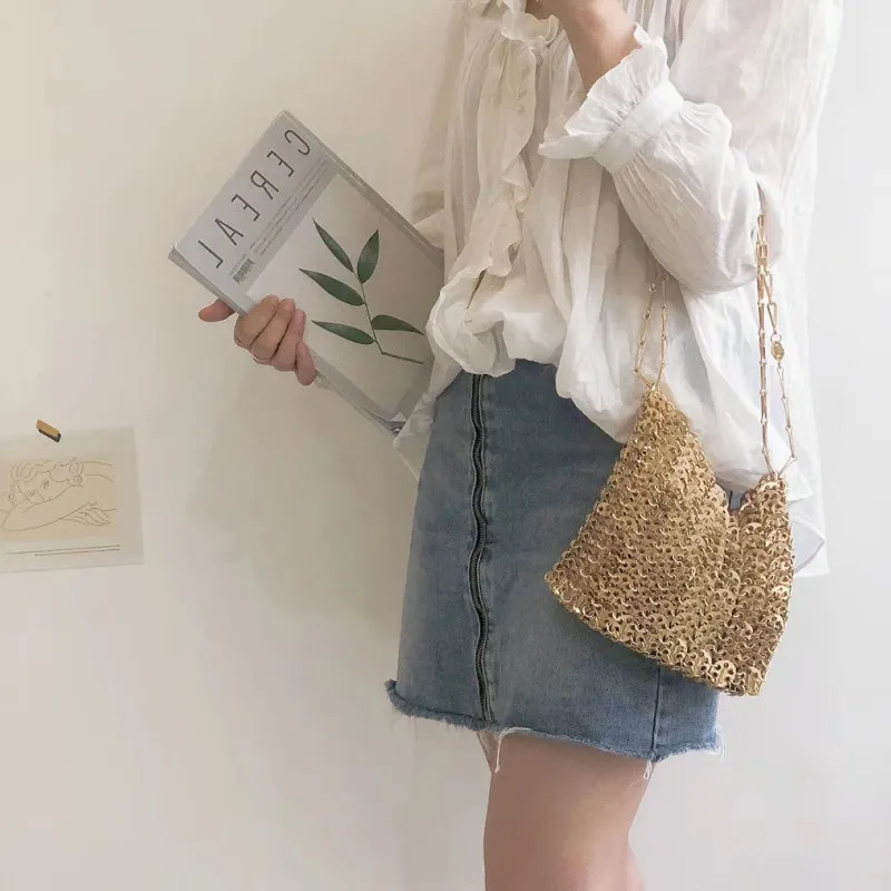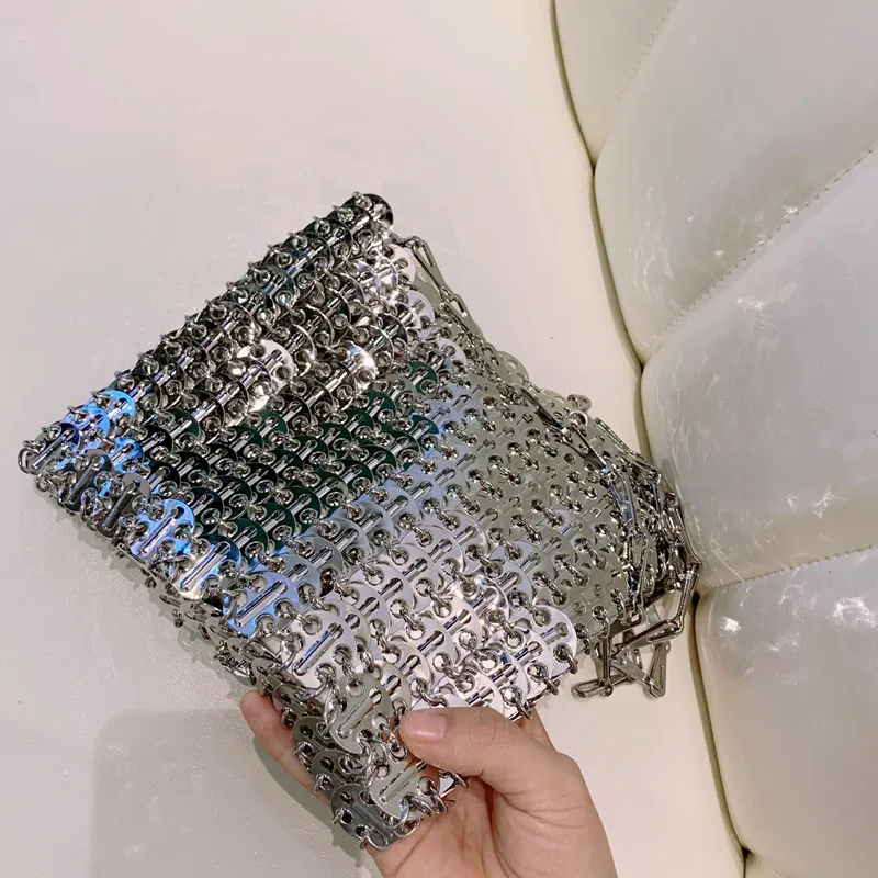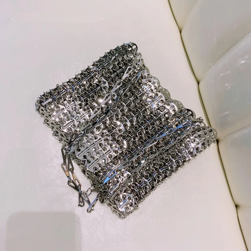 Сумка женская вечерняя, серебристая, с металлическими блестками и цепочкой