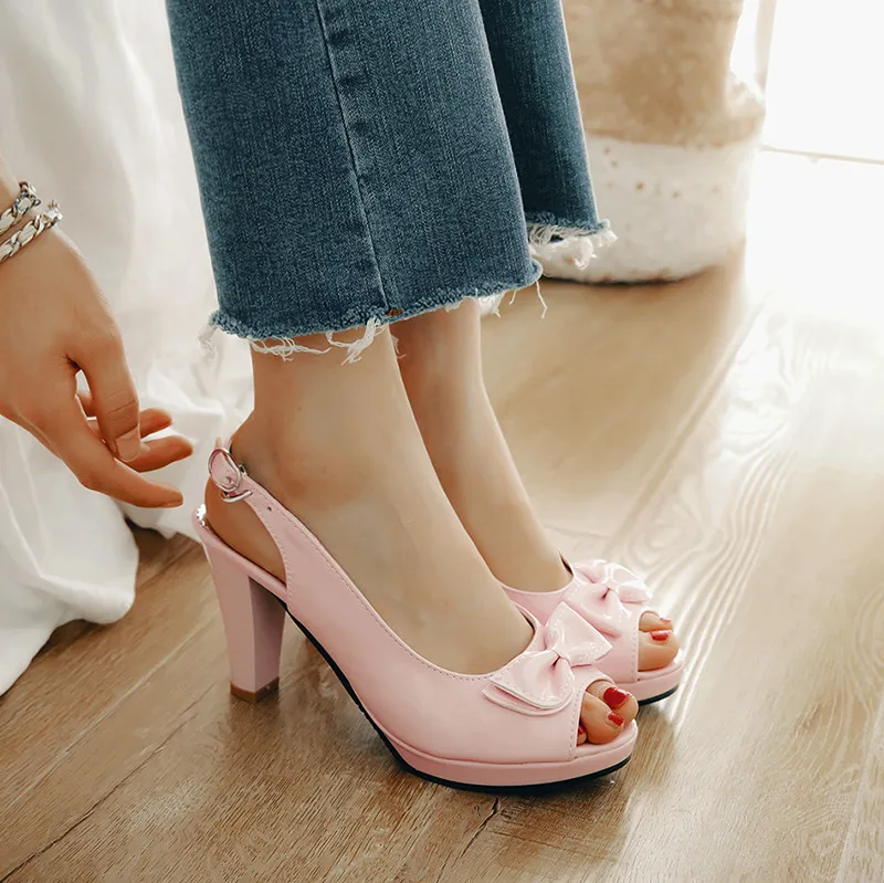 Женские босоножки с бантом MORAZORA, черные босоножки на высоком каблуке, с открытым носком, большой размер 33-45, 2021