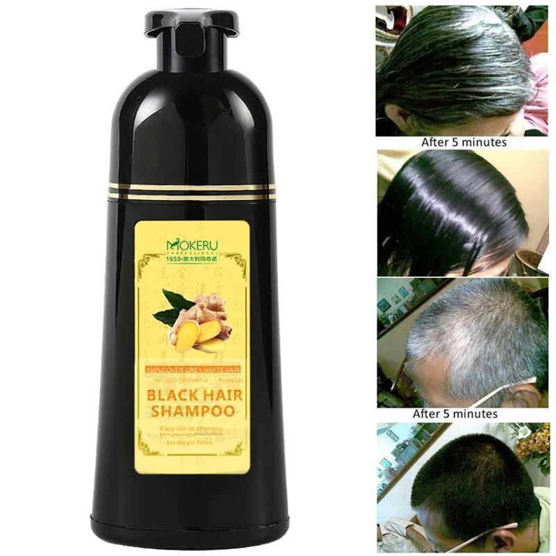 Натуральный имбирь Mokeru 2 шт.лот, шампунь для быстрой краски для волос за 5 минут, Органическая краска для серых волос, Перманентный черный шампунь для женщин