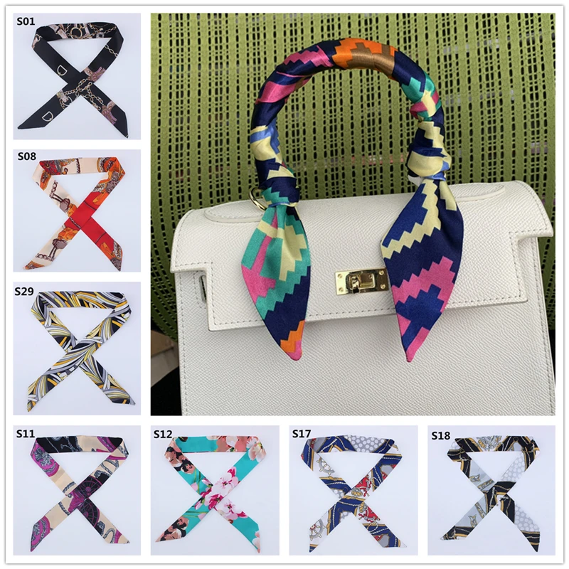 косынка на голову 2019 Новый Шелковый тонкий шарф для женщин с принтом дизайнерский узкий шарф для волос Женская длинная сумка с лентой шарфы галстук Женская мода