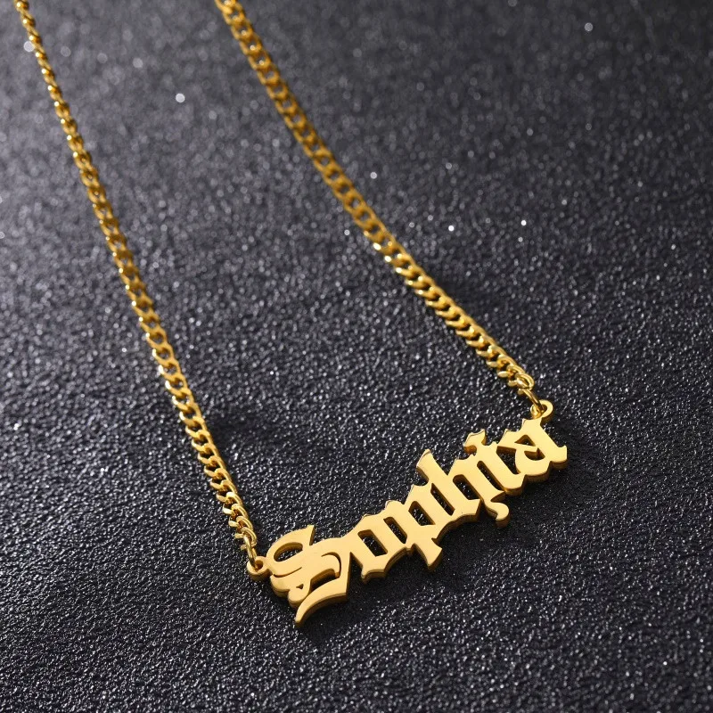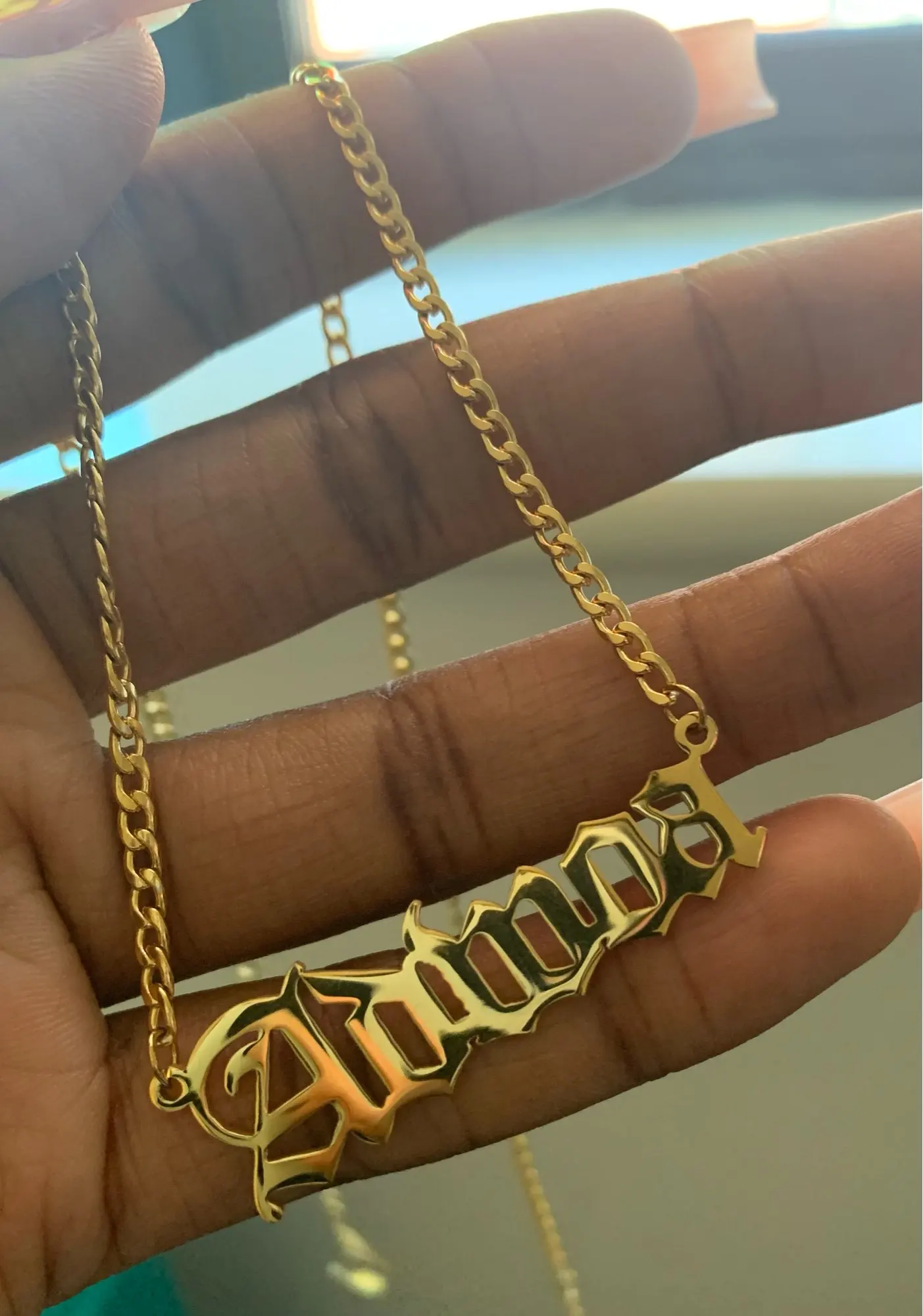 Именная Подвеска из нержавеющей стали золотого цвета с кубинской цепочкой 3 мм