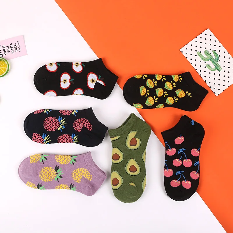 Носки женские Короткие хлопковые, милые смешные Мультяшные носки-следки в стиле Харадзюку, повседневные с фруктовым принтом, весна-лето