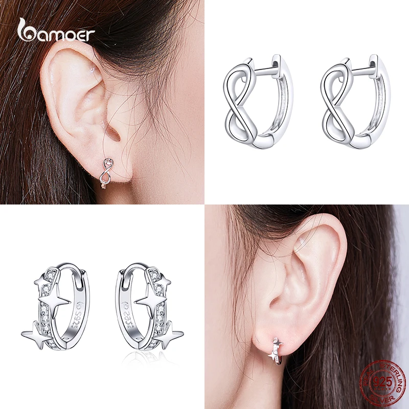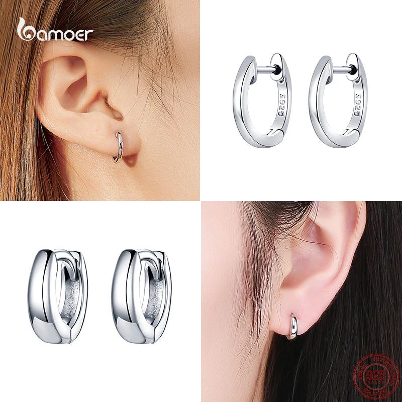 Женские серьги-кольца Bamoer, модные стильные простые серьги из настоящего серебра 925 пробы, не вызывает аллергии, модные свадебные ювелирные изделия