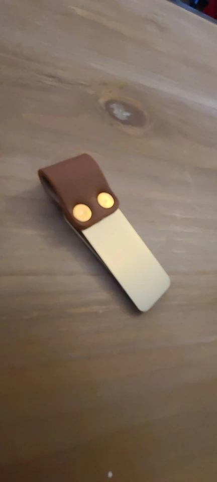 Обычный, но с кожанным держателем - удобно и + к стилю...