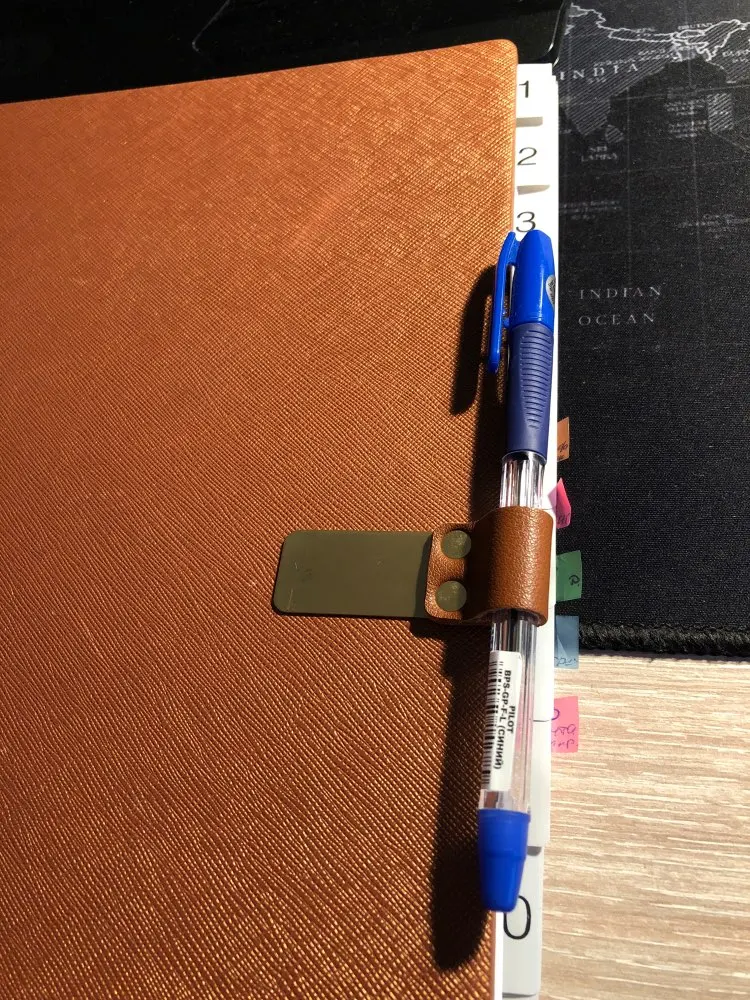 Хороший зажимчик. Очень удобно, когда в тетради или блокноте нет специальной резинки для пишущего инструмента. А так для любого блокнота подойдёт. Сам "захват" не резиновый, но обычную ручку - держит нормально. Кстати, можно держать и две ручки, если позволяет толщина и размер блока.