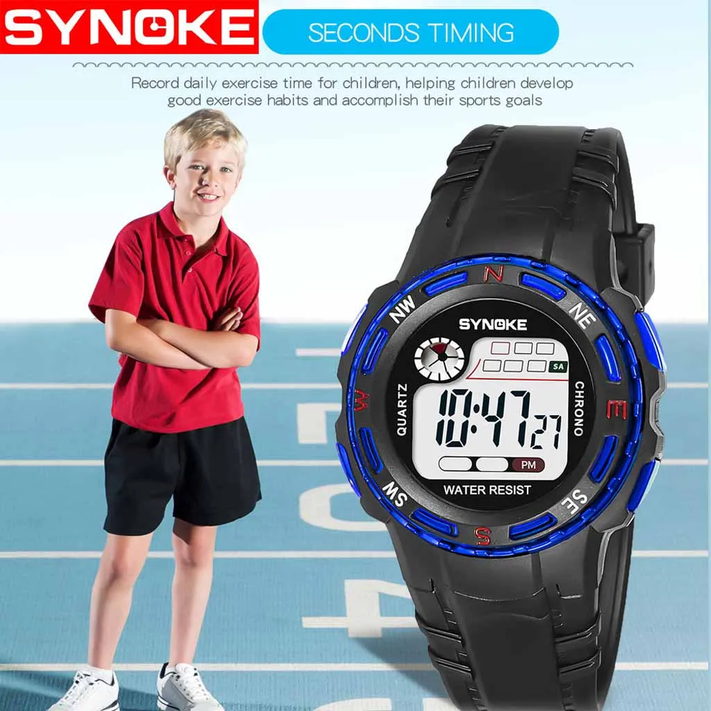 Детские часы SYNOKE, милые детские часы, спортивные водонепроницаемые часы для девочек и мальчиков, резиновые детские цифровые светодиодные наручные часы A4