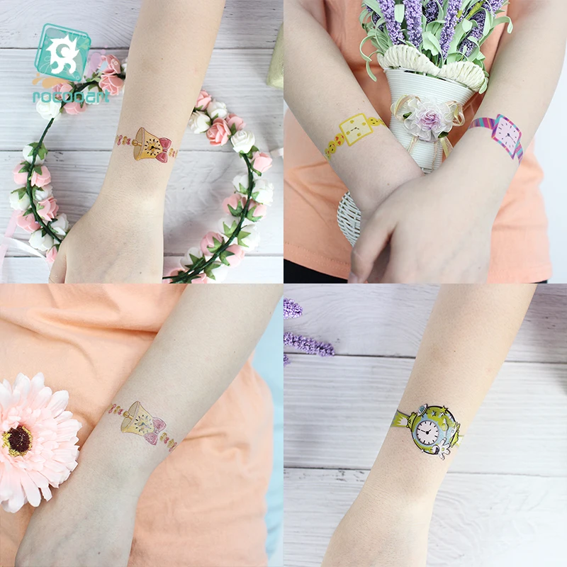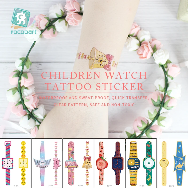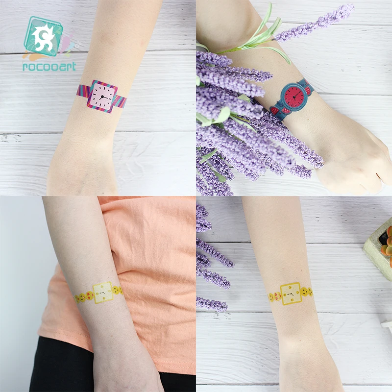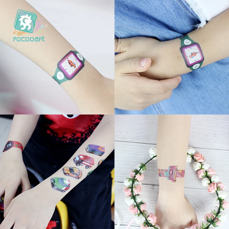 Rocooart, Мультяшные тату, поддельные часы, временные татуировки для детей, водонепроницаемые тату-Стикеры, боди-арт, тату, подарок для детей, ручная Татуировка