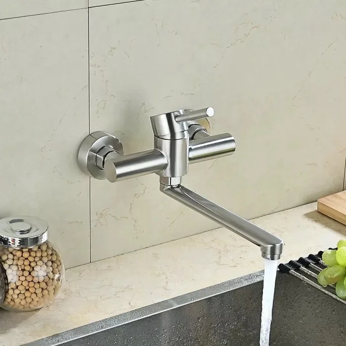 Смеситель для душа настенный, из нержавеющей стали, с длинным носом, поворот на 360 градусов