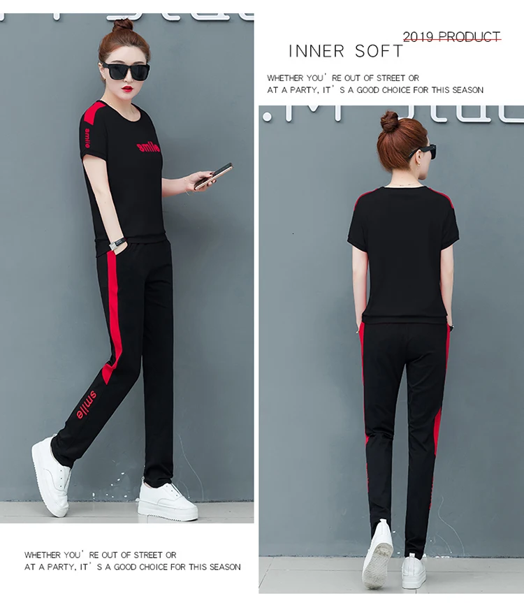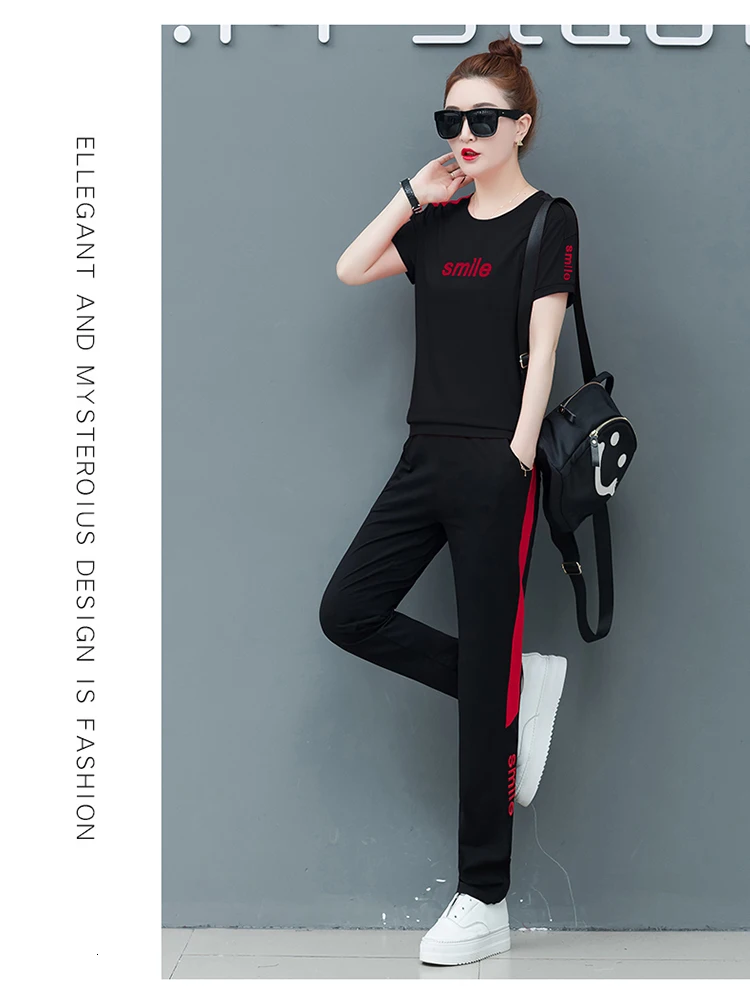 Комплект из двух предметов, Новинка лета 2020, модные женские комплекты, женские брюки в полоску, большой черный наряд, спортивный костюм, одежда
