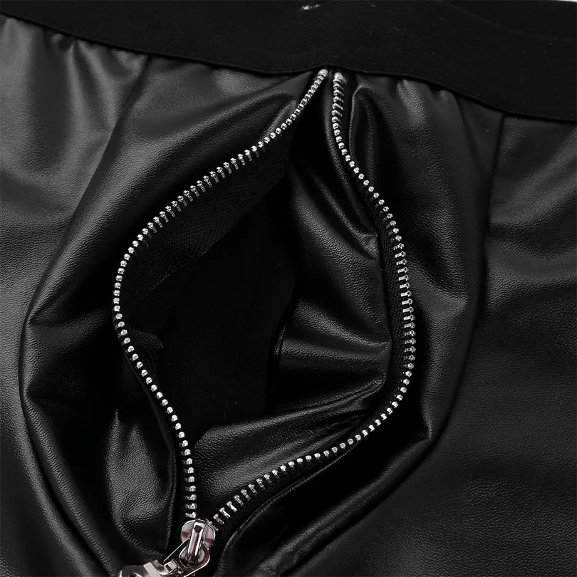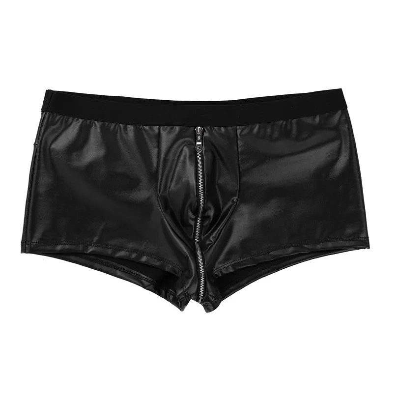Мужское сексуальное нижнее белье, трусы-боксеры из искусственной кожи, сексуальные трусы на молнии, с низкой посадкой, экзотическое нижнее белье для ночного клуба