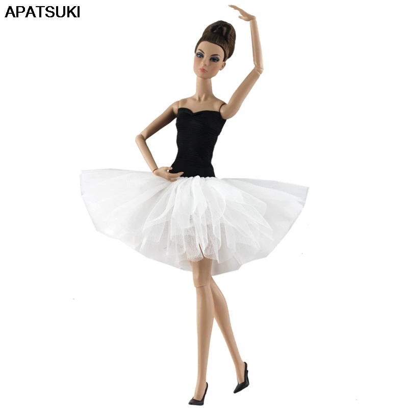 Короткое балетное платье для кукол Барби, черно-белое, вечернее платье-пачка, наряды для кукол Барби, аксессуары для кукол 16