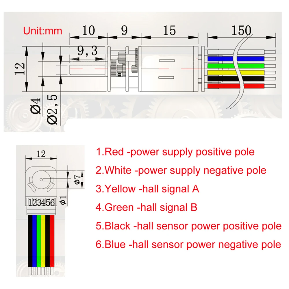 Кодовый мотор Bringsmart GB12-N20B, 3 В постоянного тока, 20-1500 обмин, металлический редуктор, для интеллектуального робота, микродвигателя