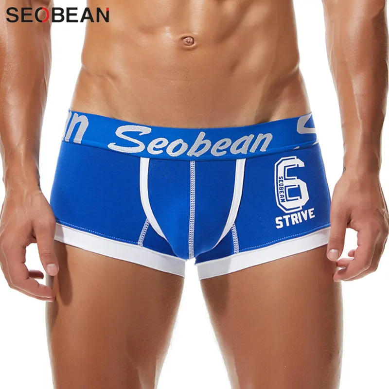 Бренд SEOBEAN, мужское нижнее белье, дышащие хлопковые трусики-бокс...