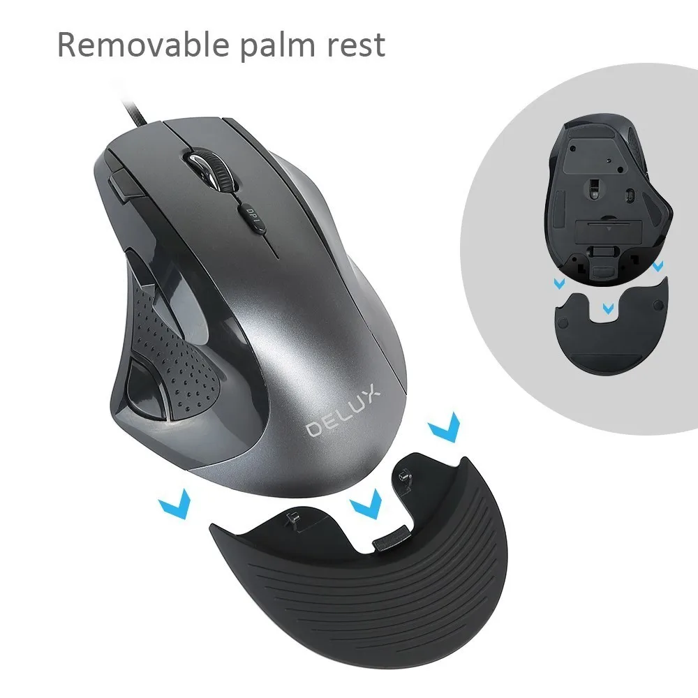 Проводная эргономичная игровая мышь Delux M910BU с 9 кнопками, оптическая мышь 4000 DPI с ковриком на запястье для ПК, игрового плеера, ноутбука