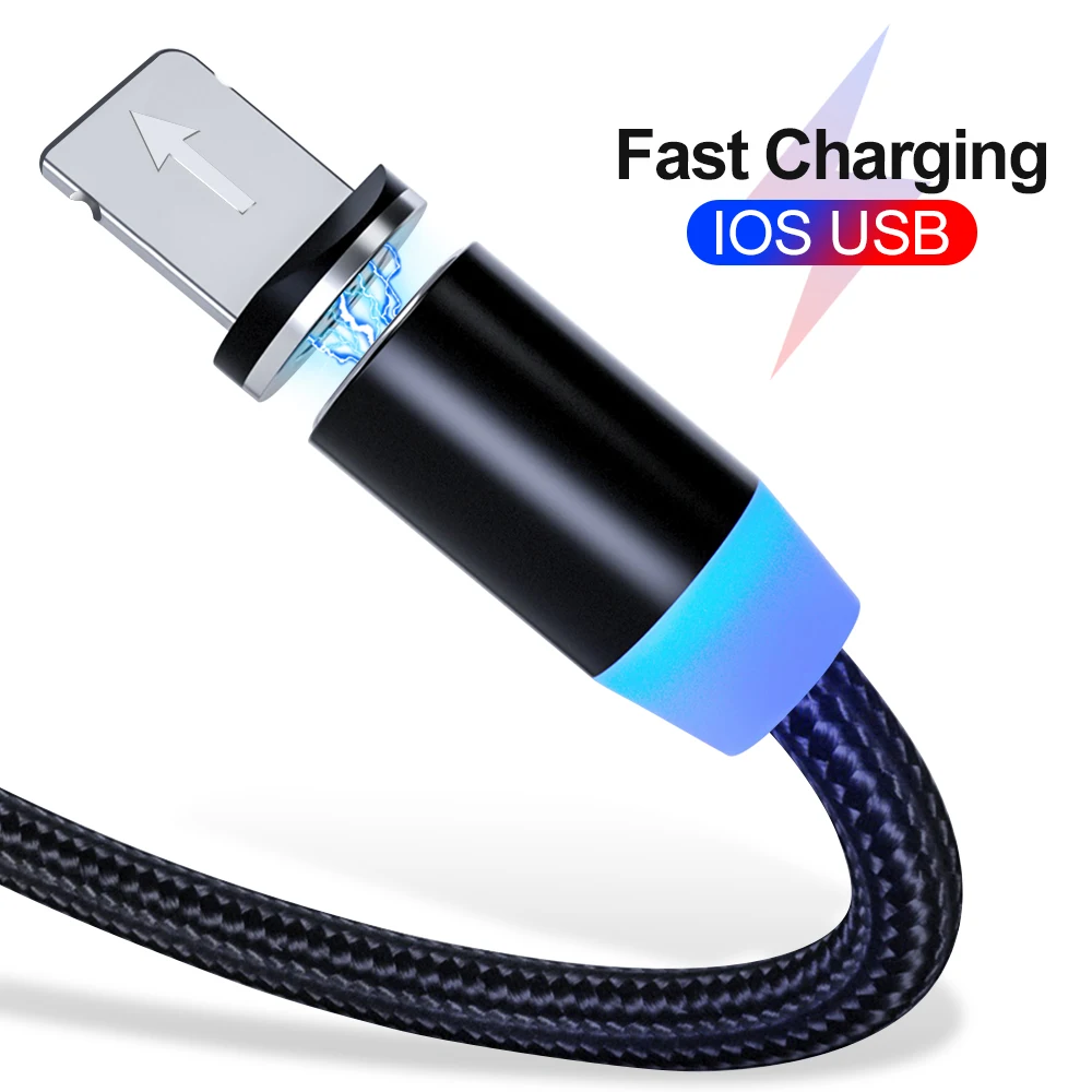 Магнитный зарядный кабель, 1 м, 2 м, Micro USB Тип C, светодиодное ...