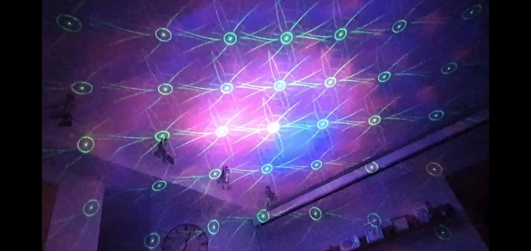 Классная штука, заказал 17 декабря, пришла в аккурат 31 декабря, с аккумулятором с пультом заряд держит долго. Без музыки светит спокойно, а музыкой вообще класс, берите не пожалеете.