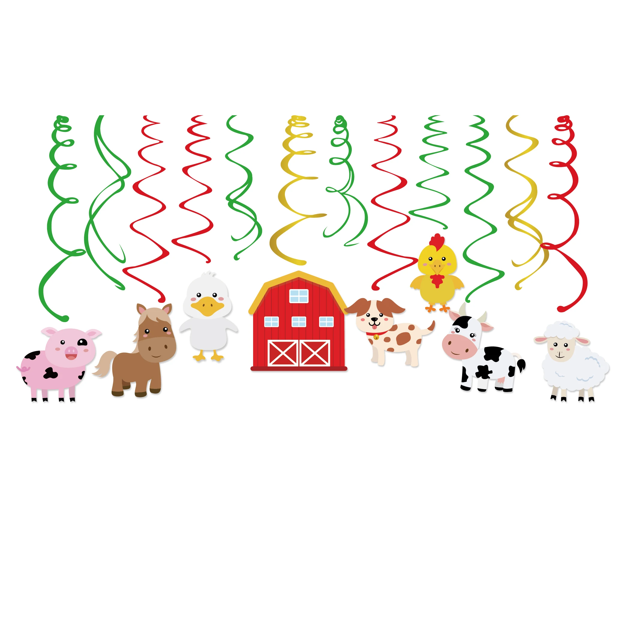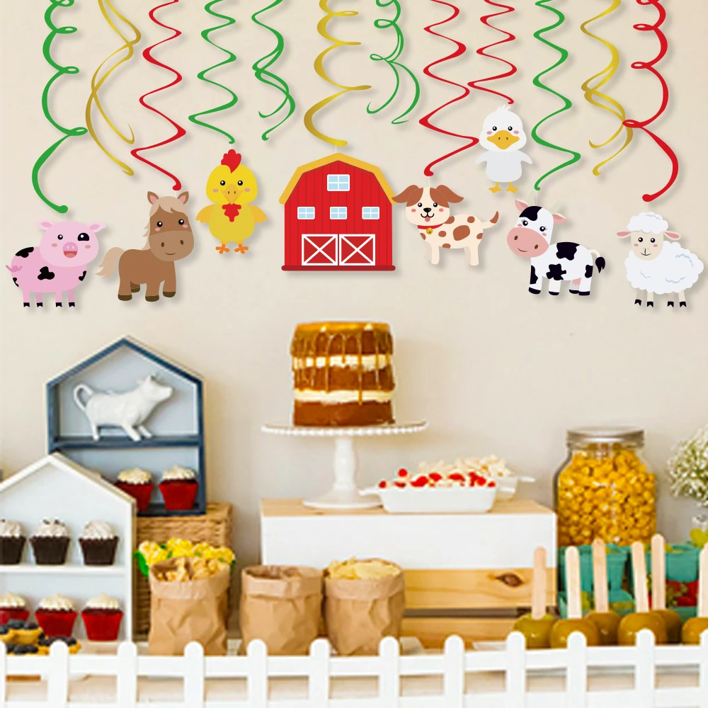 Животные фермы ПВХ спиральные Висячие качели вечерние украшения коровья утка овца курица собака свинья карты Детские сувениры для вечеринки ко дню рождения поставки