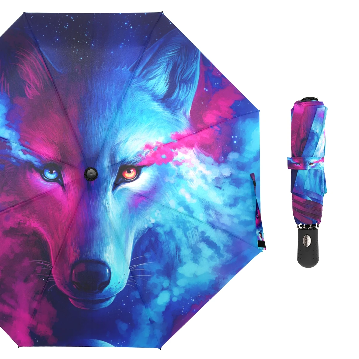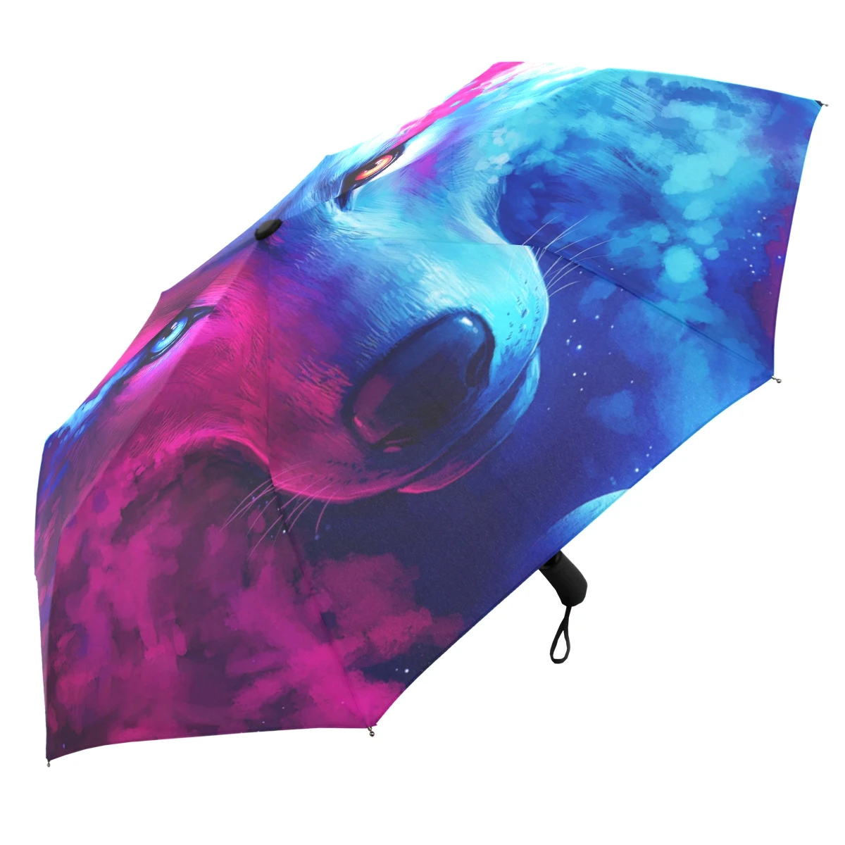 Детский зонт синий волк, ветрозащитный автоматический, складной, от дождя, для путешествий, для женщин и мужчин