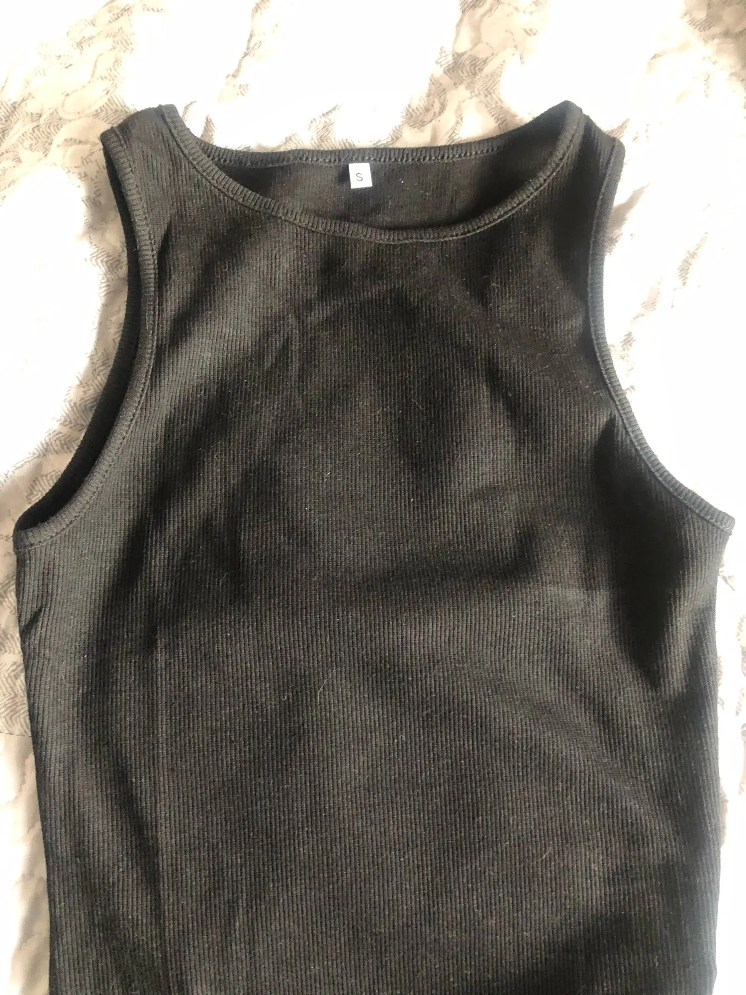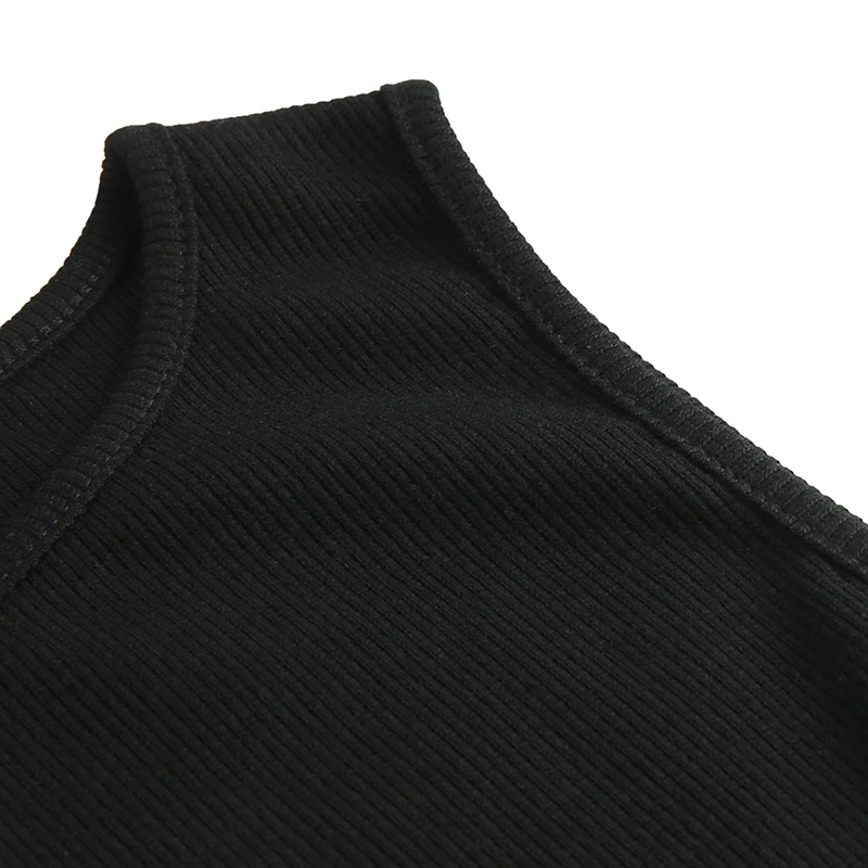 Боди женское вязаное в рубчик, без рукавов, однотонное, черный