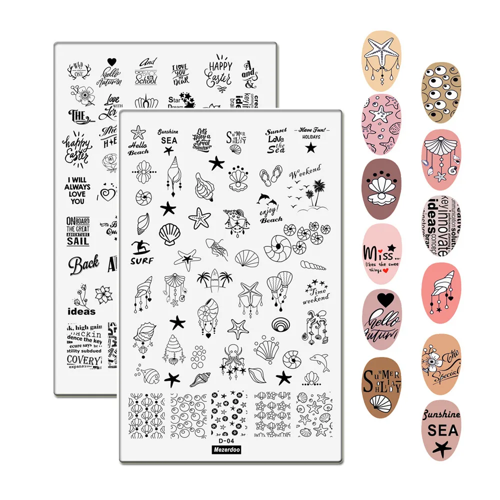 Пластины для стемпинга Weekend Surf Theme, 2 шт., морские английские буквы, креативные шаблоны для дизайна ногтей, набор штамповочных тарелок